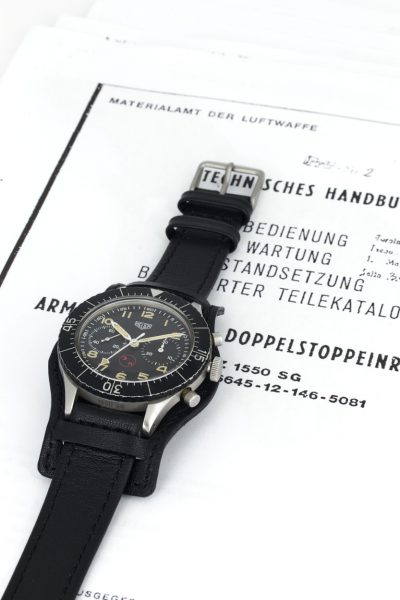 The Heuer Bund was a pilot’s watch by design, as you can clearly see from the Flyback chronograph complication. But the watch saw action in other parts of the army as well.