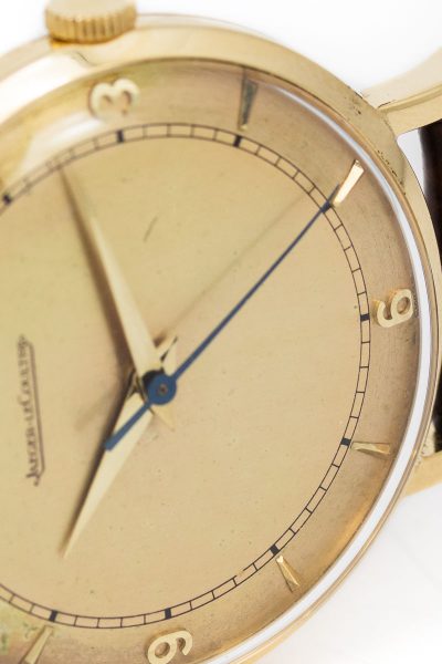 Due to protectionist laws in the US, JLC watches for the American market would be cased locally in American-made cases from 1932-1985. These were slightly different from the European-made watches and they were labeled LeCoultre. A JLC watch from this era with sole LeCoultre labeling can therefore easily be traced back to the US market. This is a work-around you will spot in other brands too. The Blancpain-Tornek rebranding is a great example.