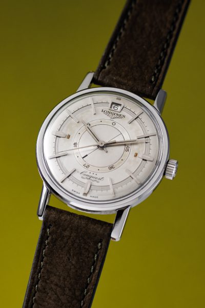 This specific Longines is truly something special. As it features a power reserve, which was quite uncommon at that time. The layout of the dial is very intriguing due to the mirror indices and minute track.