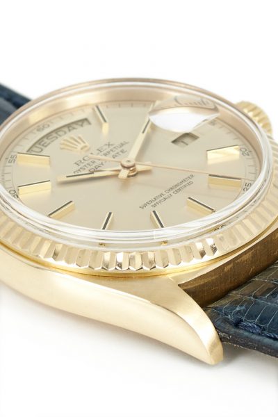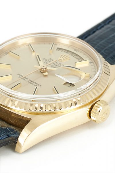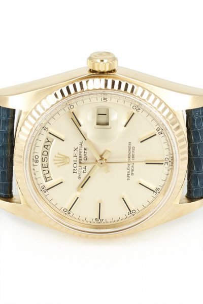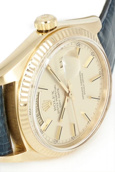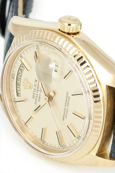 On offer here is a beautiful Rolex Day-Date ref. 1803 in 18k yellow gold on leather strap. An absolute icon of a watch, with a rather special dial…