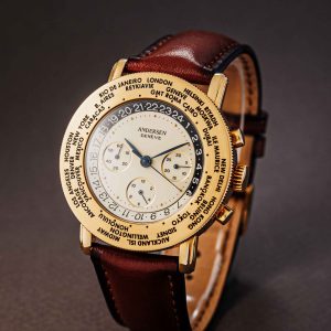 Andersen Genève is a renowned independent Swiss watchmaking brand founded by Danish watchmaker Svend Andersen in 1980. Known for producing highly sophisticated and artistic timepieces, Andersen Genève specializes in creating pièce uniques and bespoke watches, often incorporating complications such as world timers and automaton dials.