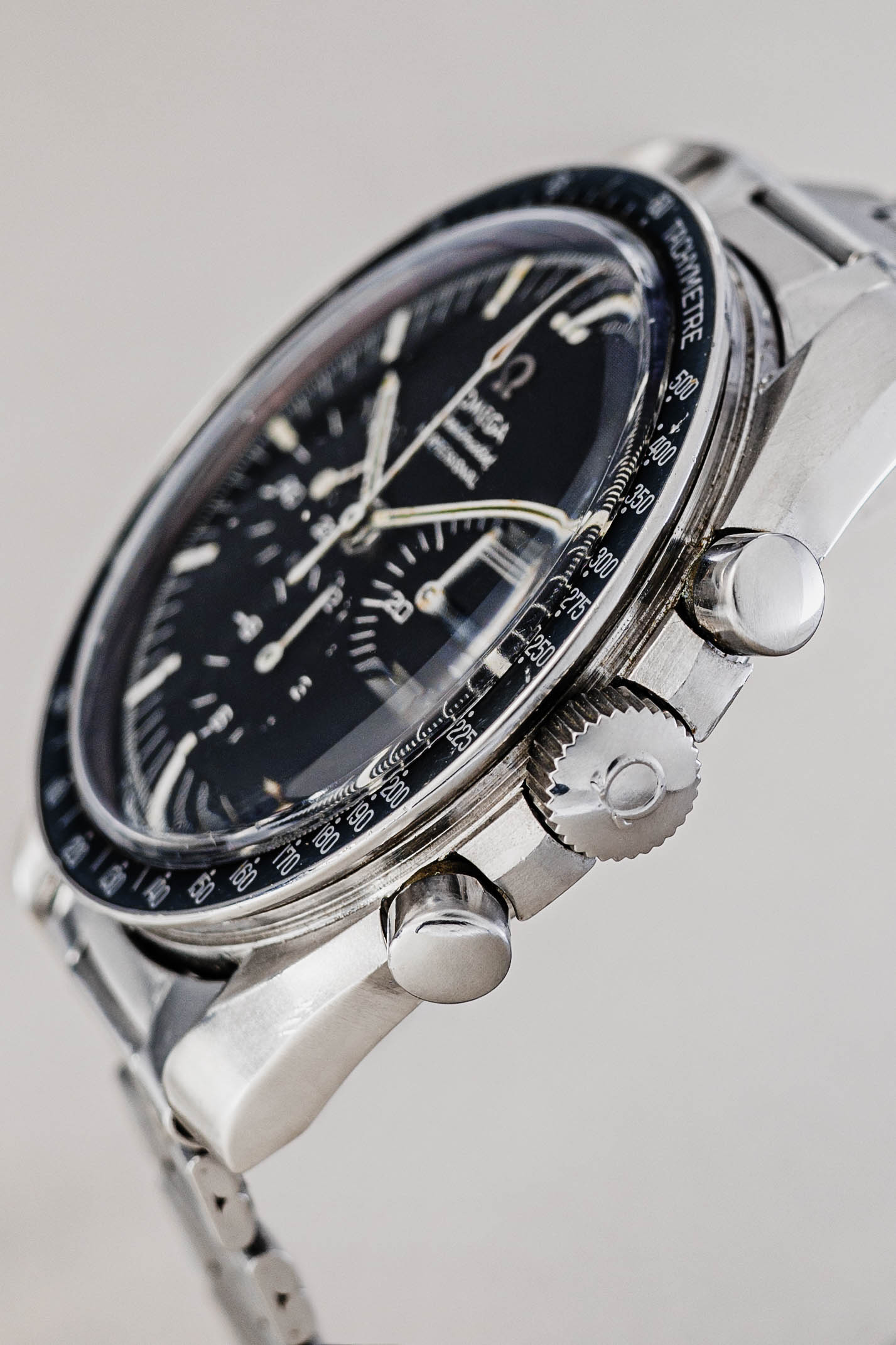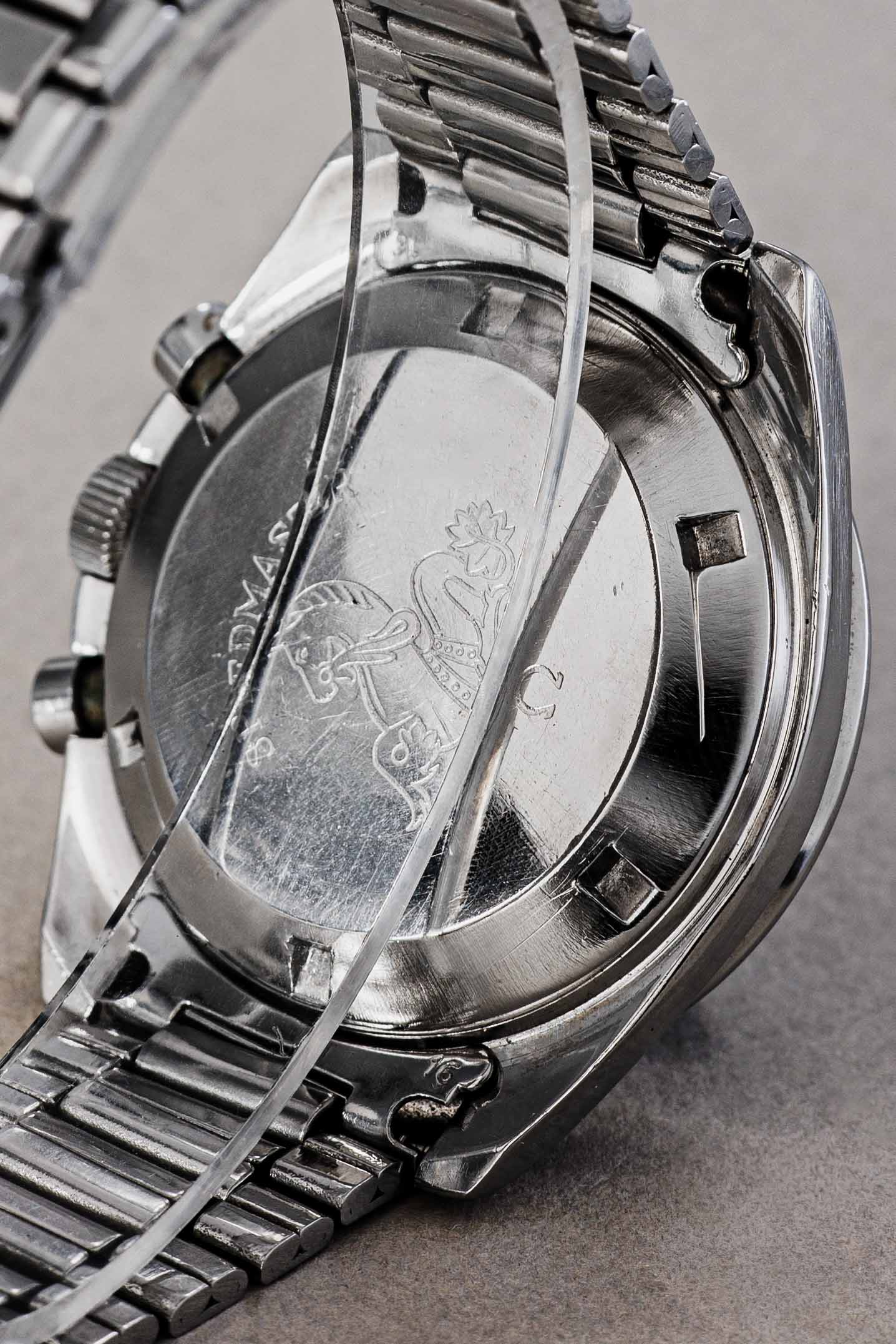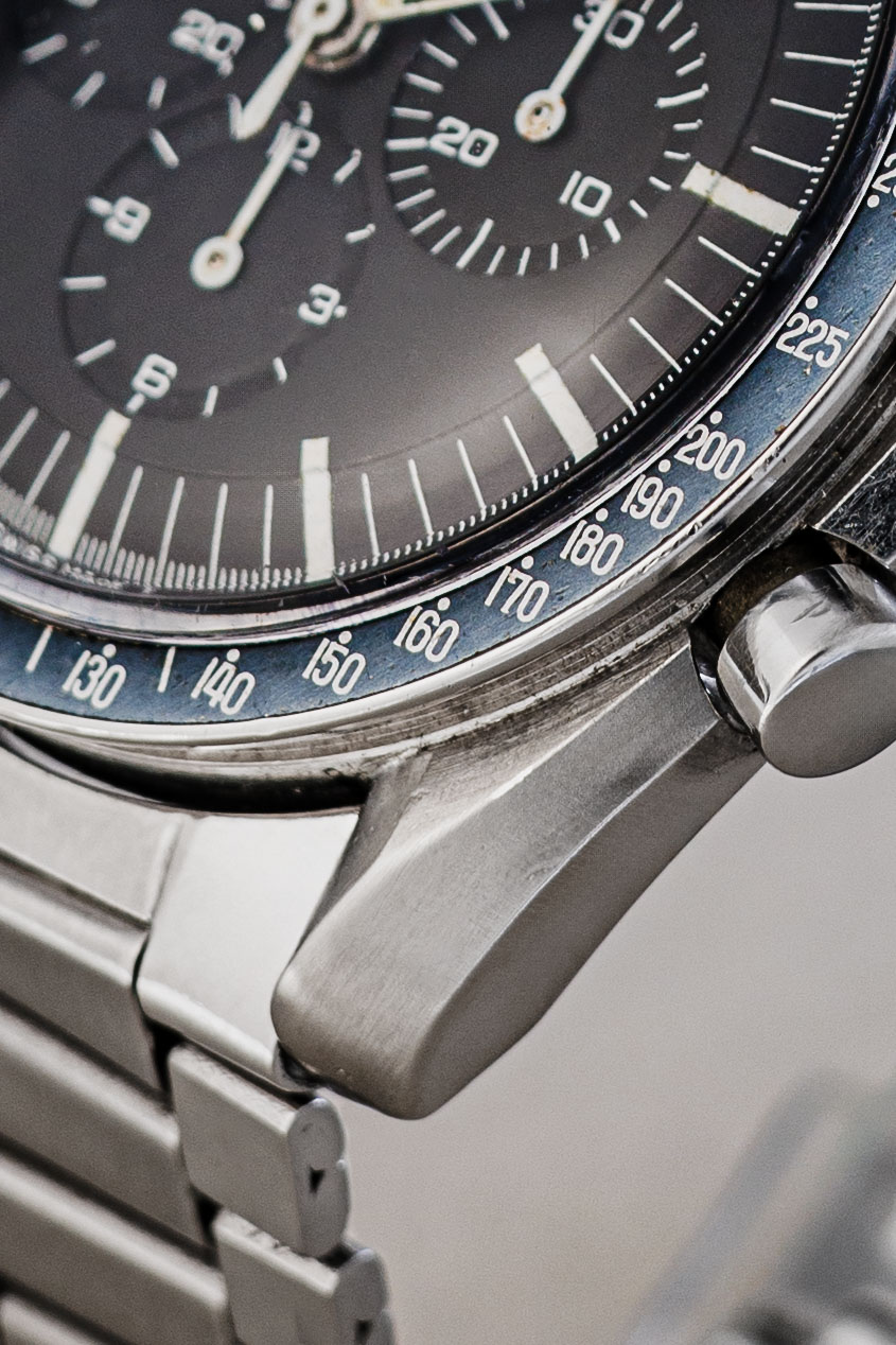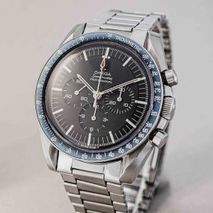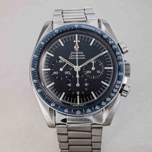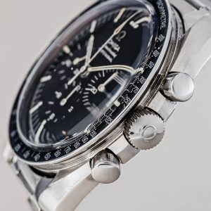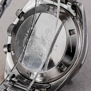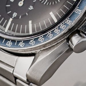 Aesthetically, the Speedmaster Professional has not changed much since those days. A rough division can be made between pre-moon and post-moon Speedies. The transition point is the inclusion of the “Flight qualified by NASA” inscriptions on the case back, although some people erroneously mark 321 caliber Speedies as pre-moon and 861 caliber variants as post-moon.