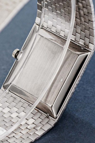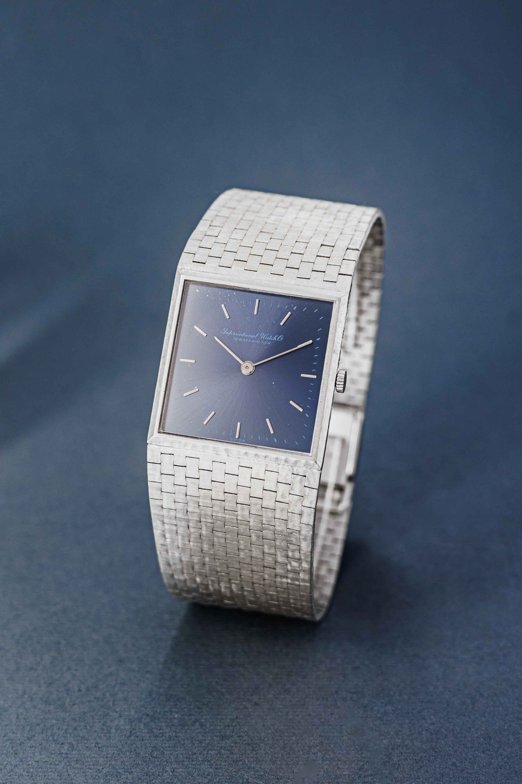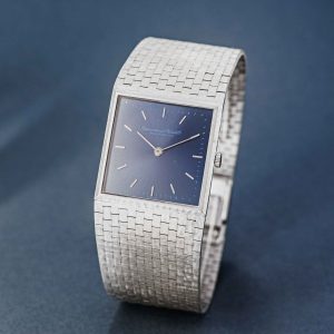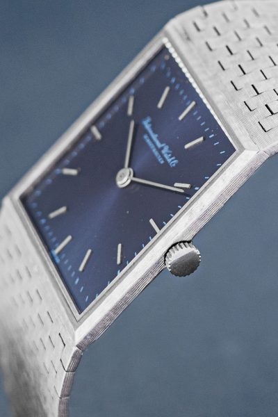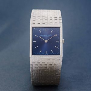 Wow, what an amazing 70’s design. This IWC ref. 1222 is a full 18k white gold watch with a beautiful white gold integrated bracelet. Just take a look at the refinement of this bracelet alone something you don’t see these days anymore. IWC did an incredible job on this watch. We’re talking about a manual watch with a caliber 171. To finish this piece of art, they paired it with a stunning and rare blue dial. We think the white gold and the blue dial give it a luxurious, yet sporty and timeless look. International Watch Co. Schaffhausen at their best.