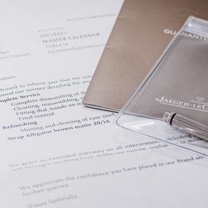 Accompanied by its original service papers and documentation, the watch retains its full authenticity. A silvered dial with chrome-finished details adds a touch of understated luxury. Every passing second highlights the finesse of its movement.