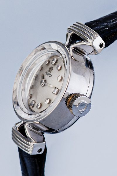 A truly charming and refined piece of jewelry: a vintage Omega women’s watch with a unique cut glass finish.