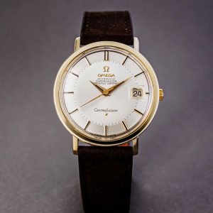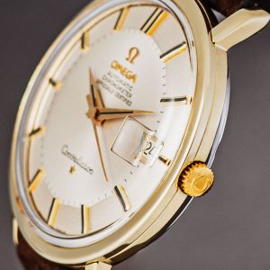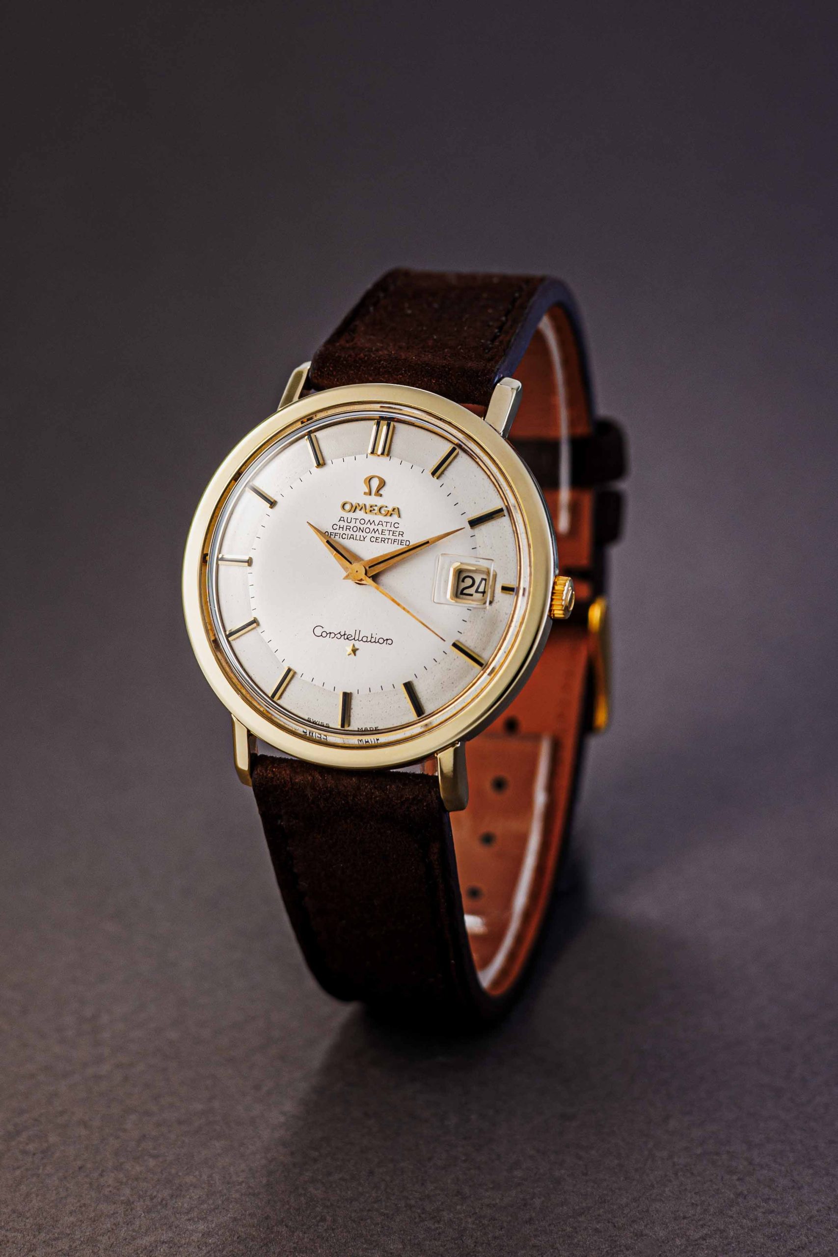 The earlier models from the 1950’s and 1960’s featured the iconic pie-pan dial. The dial would slope down at an angle around its outer perimeter, providing a very cool sense of dimensionality. Since the look is reminiscent of the underside of a pie-pan, a nickname was quickly born. Halfway through the sixties, flat-dial versions slowly took over. The pie-pan remains a highly sought-after Constellation variant today.