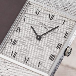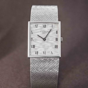 This particular piece (“watch only”) is more than a timekeeper; it’s a rare relic from an era when Patek Philippe proved that a watch doesn’t have to be a circle to approach perfection. An understated white gold icon for the connoisseur who knows that true luxury lies in the details.
