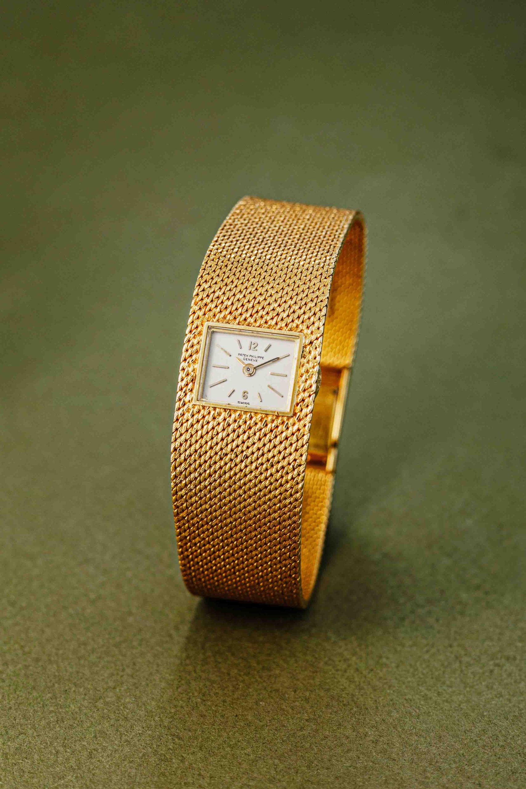 Linen texture: The side of the gold case features a beautiful, delicate engraving that resembles a textile texture (also known as a “linen finish”). This hand-engraving seamlessly blends into the texture of the Milanese bracelet, testifying to the highest level of craftsmanship.