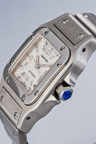 The 1970’s Quartz crisis and Audemars Piguet’s brilliant answer in the Royal Oak, triggered Cartier to morph the Santos into a modern sports watch. A steel version on an integrated steel bracelet was introduced in 1978, the Santos de Cartier. A more rounded, quartz powered Santos Galbée was launched in 1987. Multiple variations on the theme were launched since. If it is the classical look you are after, the Santos Dumont remains most faithful to the very first Santos from 1904.