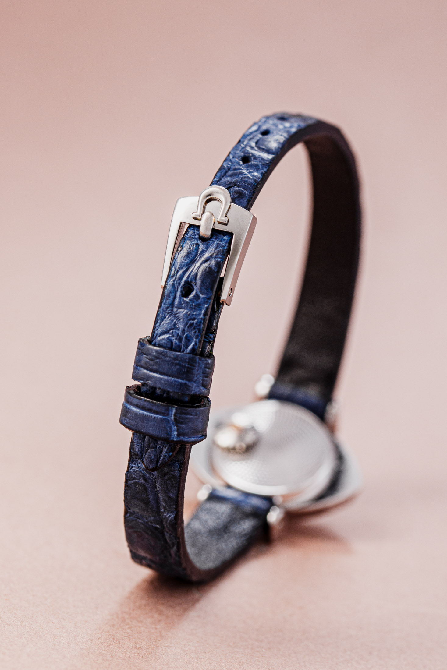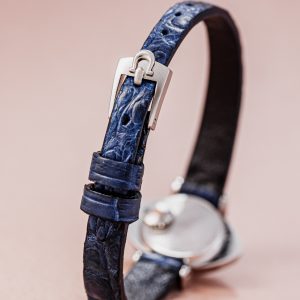 As the icing on the cake, the dial is subtly set with 10 brilliant-cut diamonds. These surprising accents catch the light and elevate the watch from a mere timekeeper to a true piece of jewelry. The blue strap completes the look and gives this beautiful, detailed timepiece a luxurious touch. For the woman who appreciates subtlety and elegance, this AWCo watch is more than just a piece of jewelry; it’s a wearable work of art with soul and a beautiful design that commands attention.