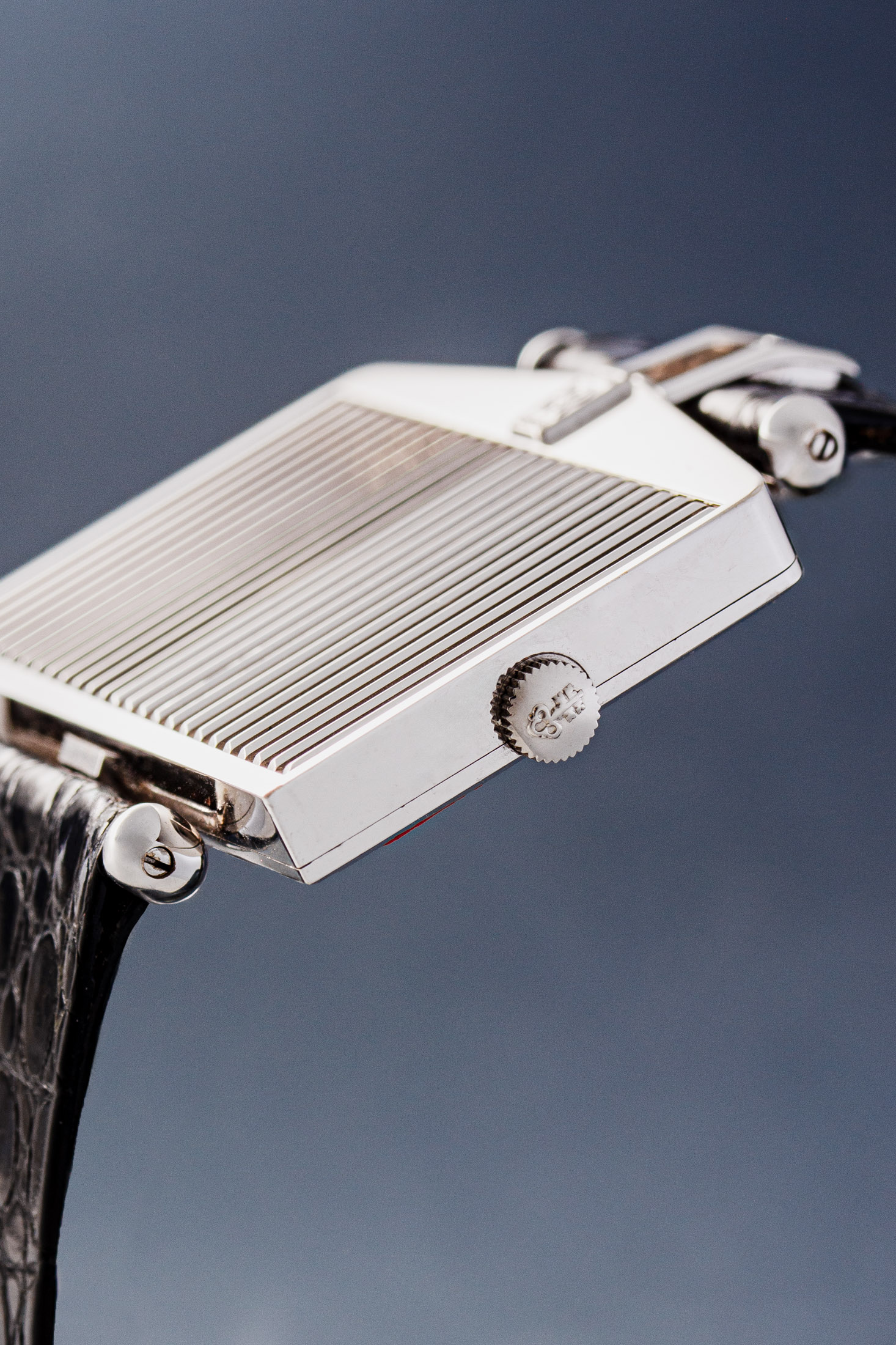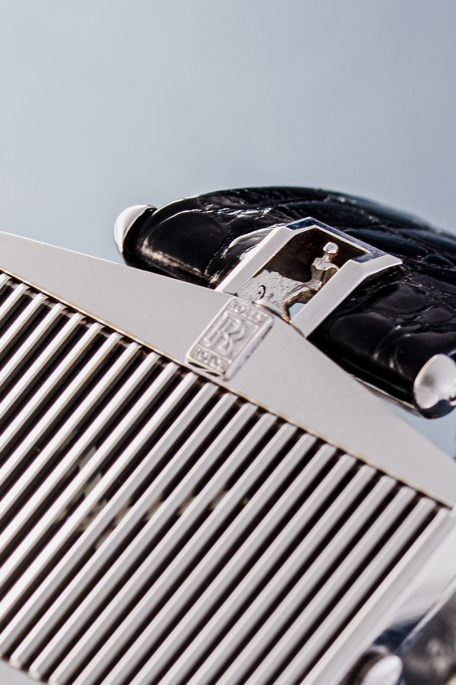 Corum remains the only watchmaker ever granted the license to integrate the unmistakable Rolls-Royce grille into a timepiece design. Each watch was meticulously hand-crafted to order, with the “Spirit of Ecstasy” emblem sculpted entirely by hand in solid white gold. This example retains its original 18k white gold buckle and original strap.