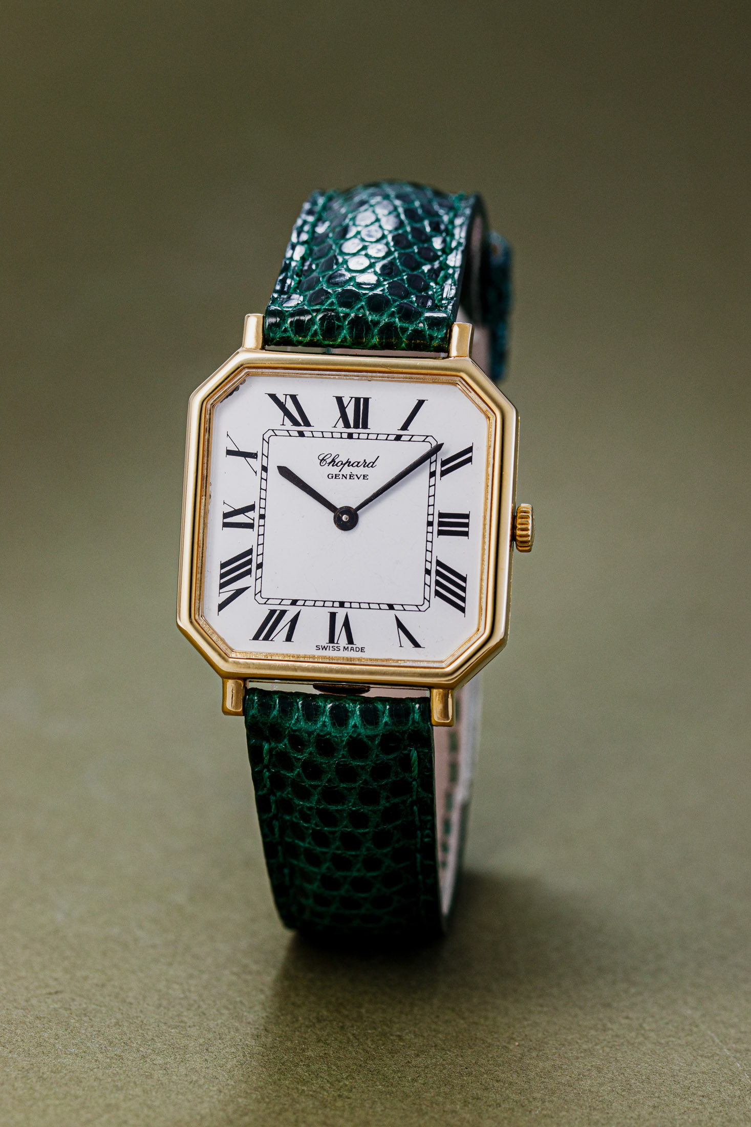 At Amsterdam Watch Company (AWCo), we are pleased to present this exceptional piece a fine example of 1970s Chopard design, combining precise craftsmanship, solid gold construction, and understated elegance.