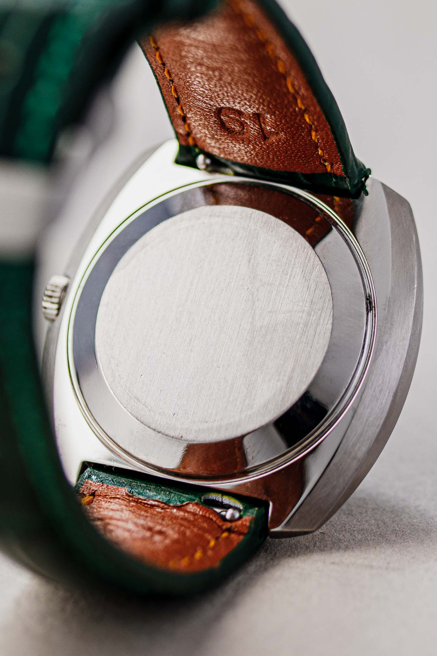 The IWC Ref. 814 from 1970 is a remarkable example of IWC’s craftsmanship during this era. This model stands out with its rare green marble dial, a distinctive and uncommon feature that gives each watch a unique appearance.