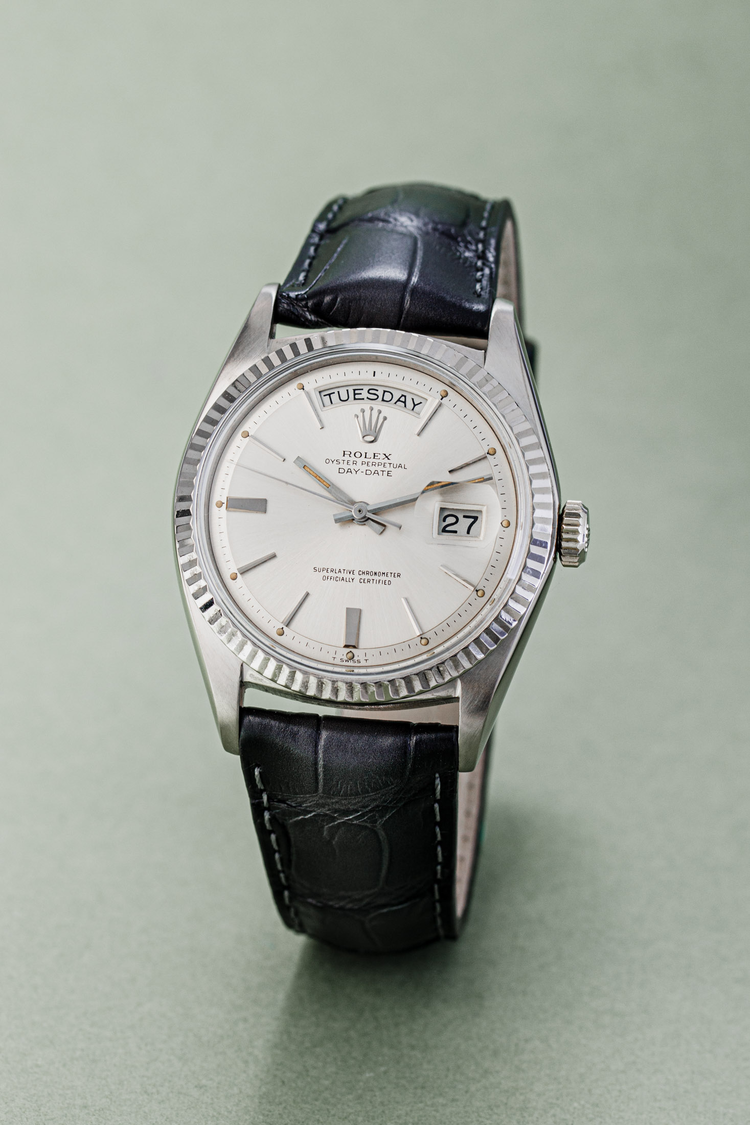 The Day-Date was launched in 1956 as the Ref. 6510 and Ref. 6511. It was the first watch to display the day of the week as well as the date, hence the name. It was updated to the Ref. 6611, adding Superlative Chronometer certification to the mix. The 6611 is the only Day-Date ever to be made in steel, but only 6 pieces are known to exist.