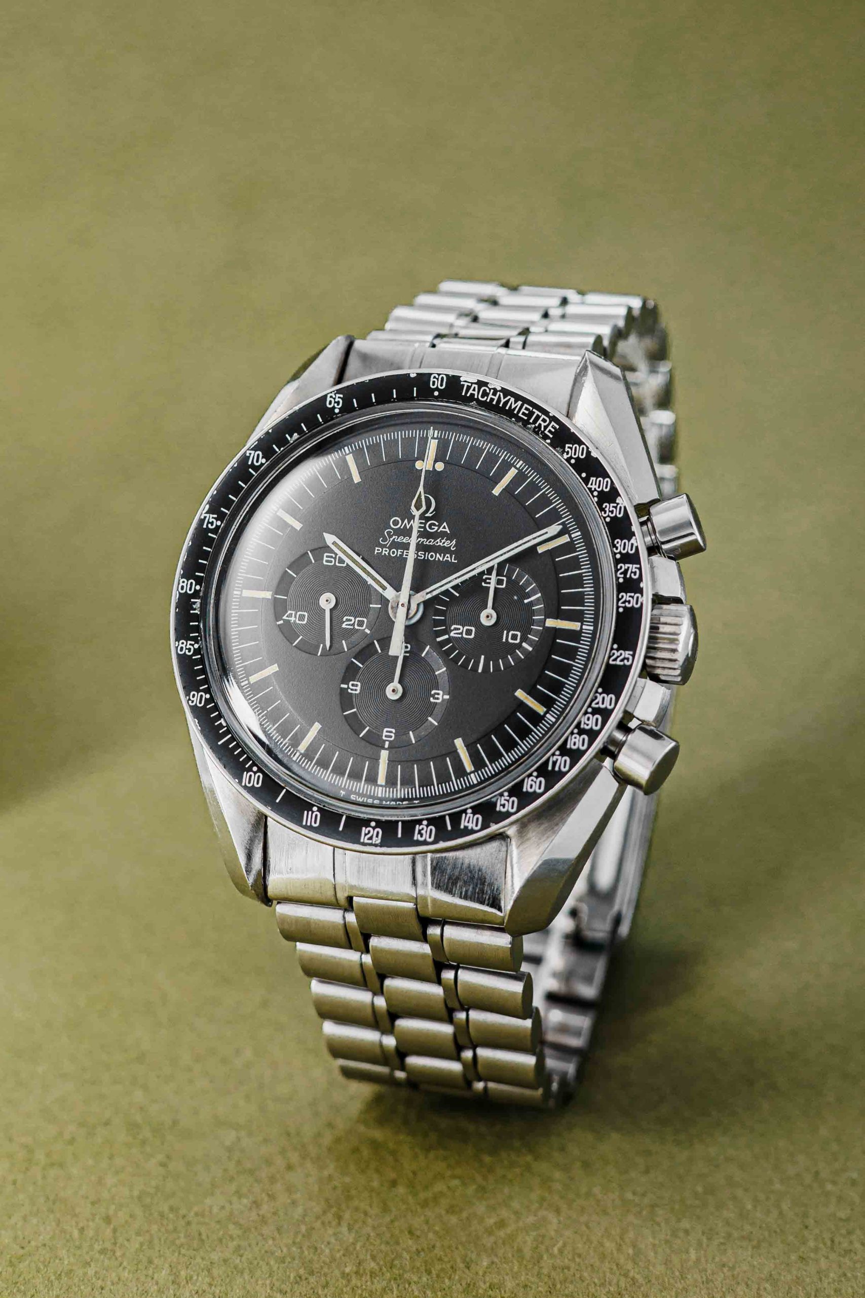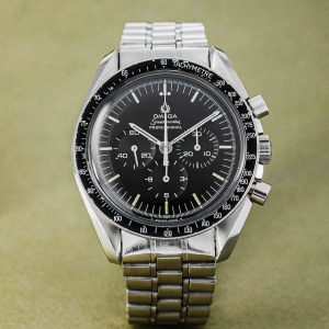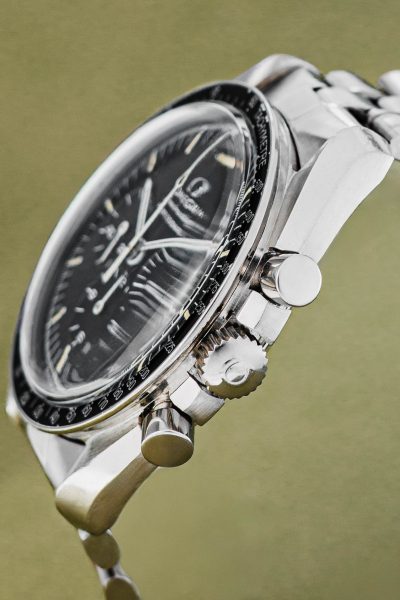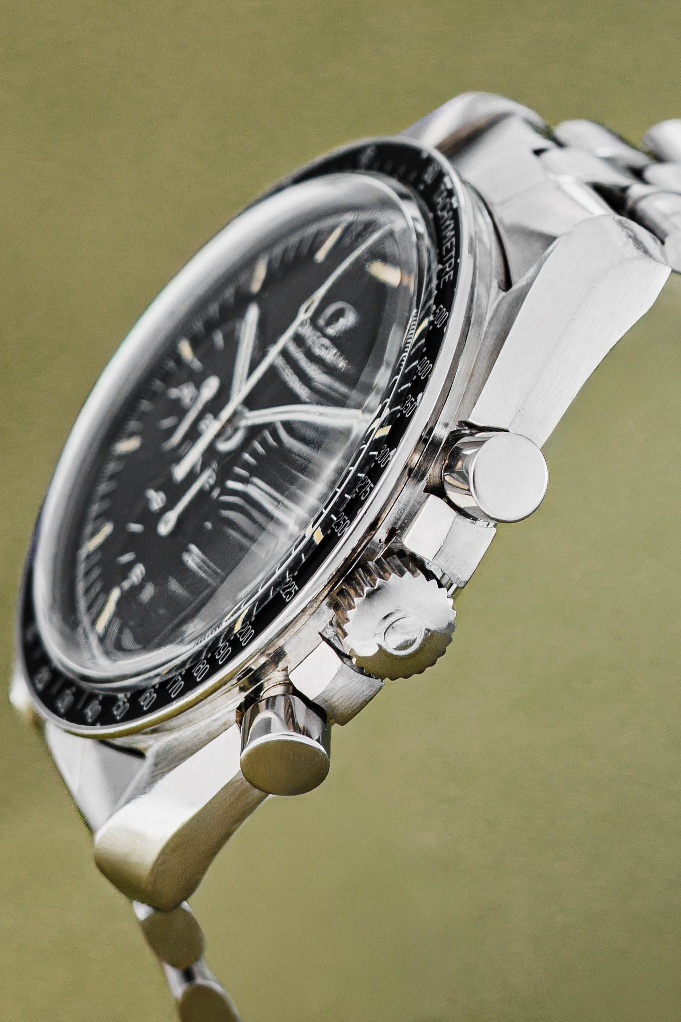 Aesthetically, the Speedmaster Professional has not changed much since those days. A rough division can be made between pre-moon and post-moon Speedies. The transition point is the inclusion of the “Flight qualified by NASA” inscriptions on the case back, although some people erroneously mark 321 caliber Speedies as pre-moon and 861 caliber variants as post-moon.