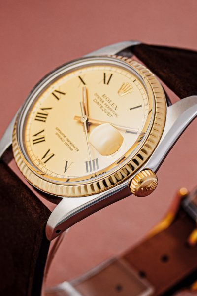 This particular example showcases exactly why the Buckley dial became such a late bloomer. The champagne dial coordinates beautifully with the two-tone case, creating that warm aesthetic that makes this watch feel quite special. Combined with the suede brown leather strap, it’s a combination that feels both classic and unexpectedly fresh.
