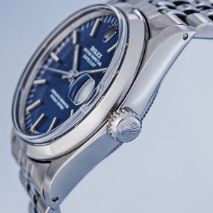 When it comes to vintage, two generations of Datejust are particularly popular; the Ref. 16xx and the later five-digit references. The 16xx models were made from the fifties until roughly 1978 and feature a beautifully dimensional pie-pan dial. Many of these came on folded jubilee bracelets and they did not yet feature a quickset date.
