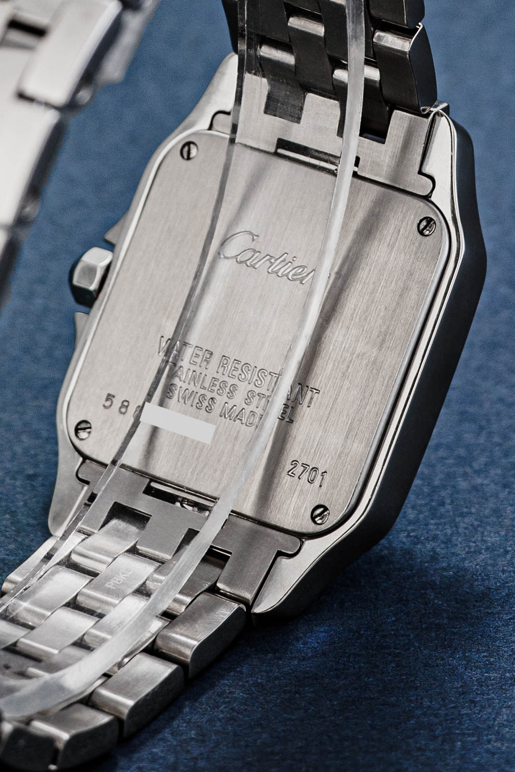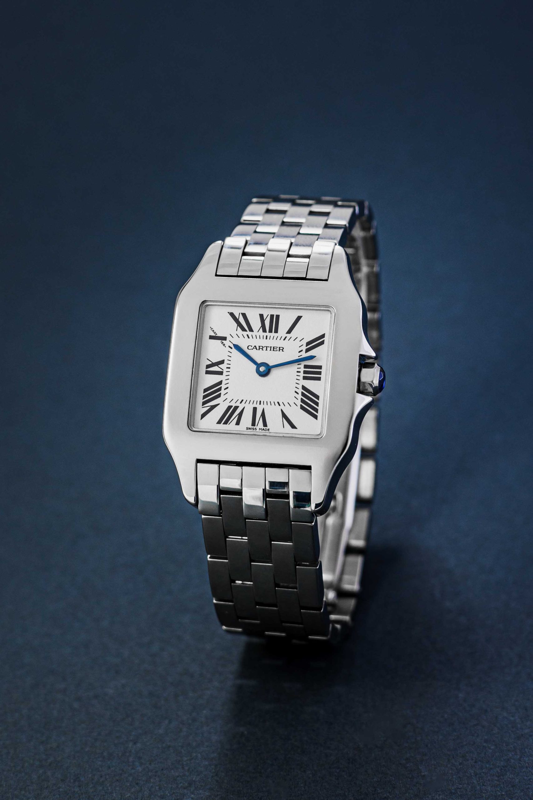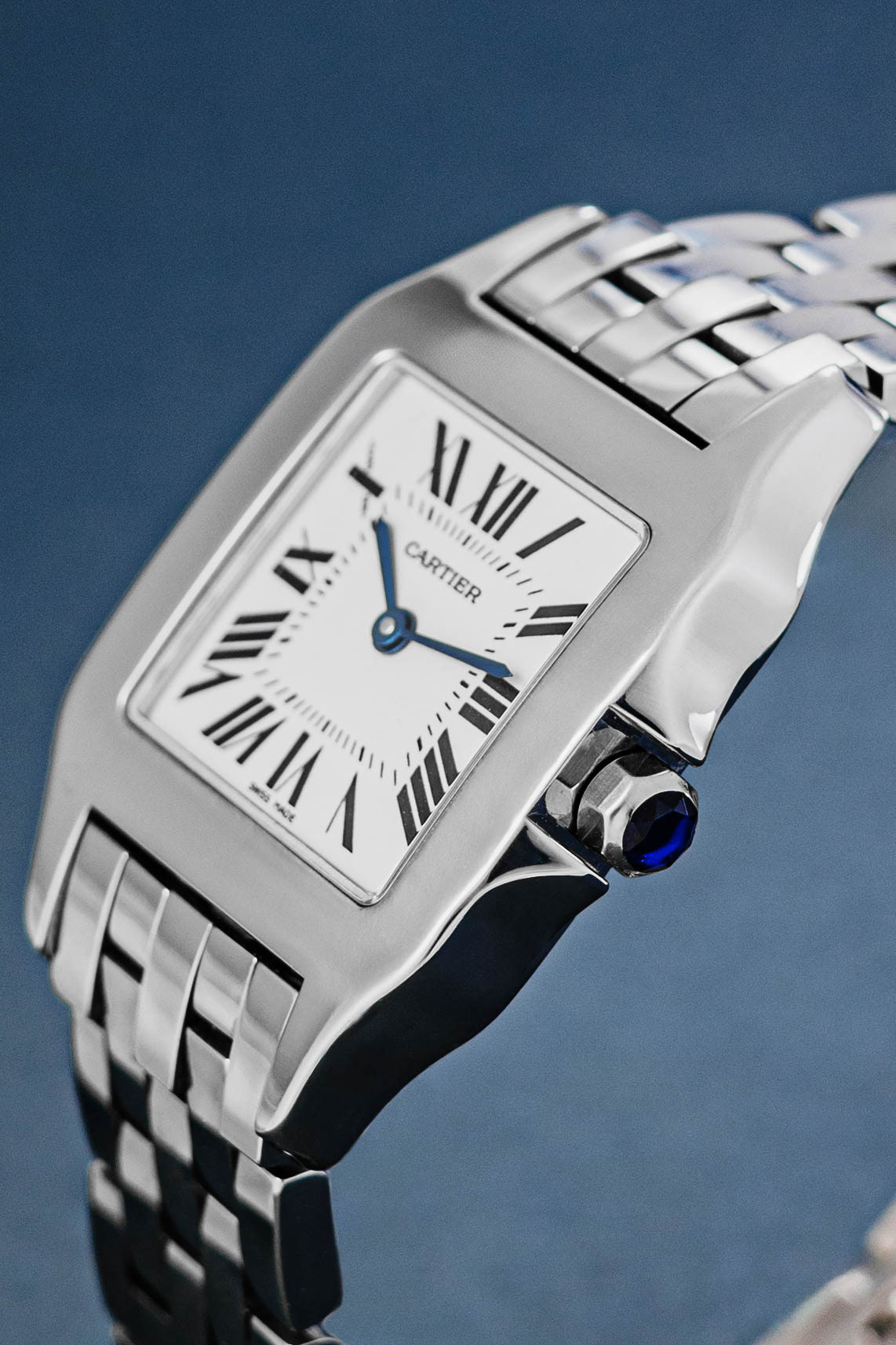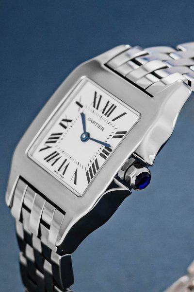 The recipe is clear: white dials, heat-blued hands, stark black Roman numerals and a sapphire cabochon in the crown. We try not to be too liberal with the term iconic, but it surely applies here! Countless variations in case shapes, sizes, movement types and materials have been made. From the Ronde to the Pasha and from the Baignoire to the Ceinture. A fun detail is the signature below six o’ clock. “Swiss” indicates that these are Swiss made watches. But some come with a “Paris” designation, signaling those examples were sold in Cartier’s flagship store in Paris, Place Vendôme. A particularly desirable and collectible feature.