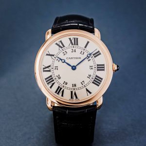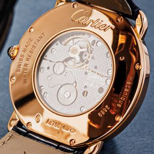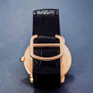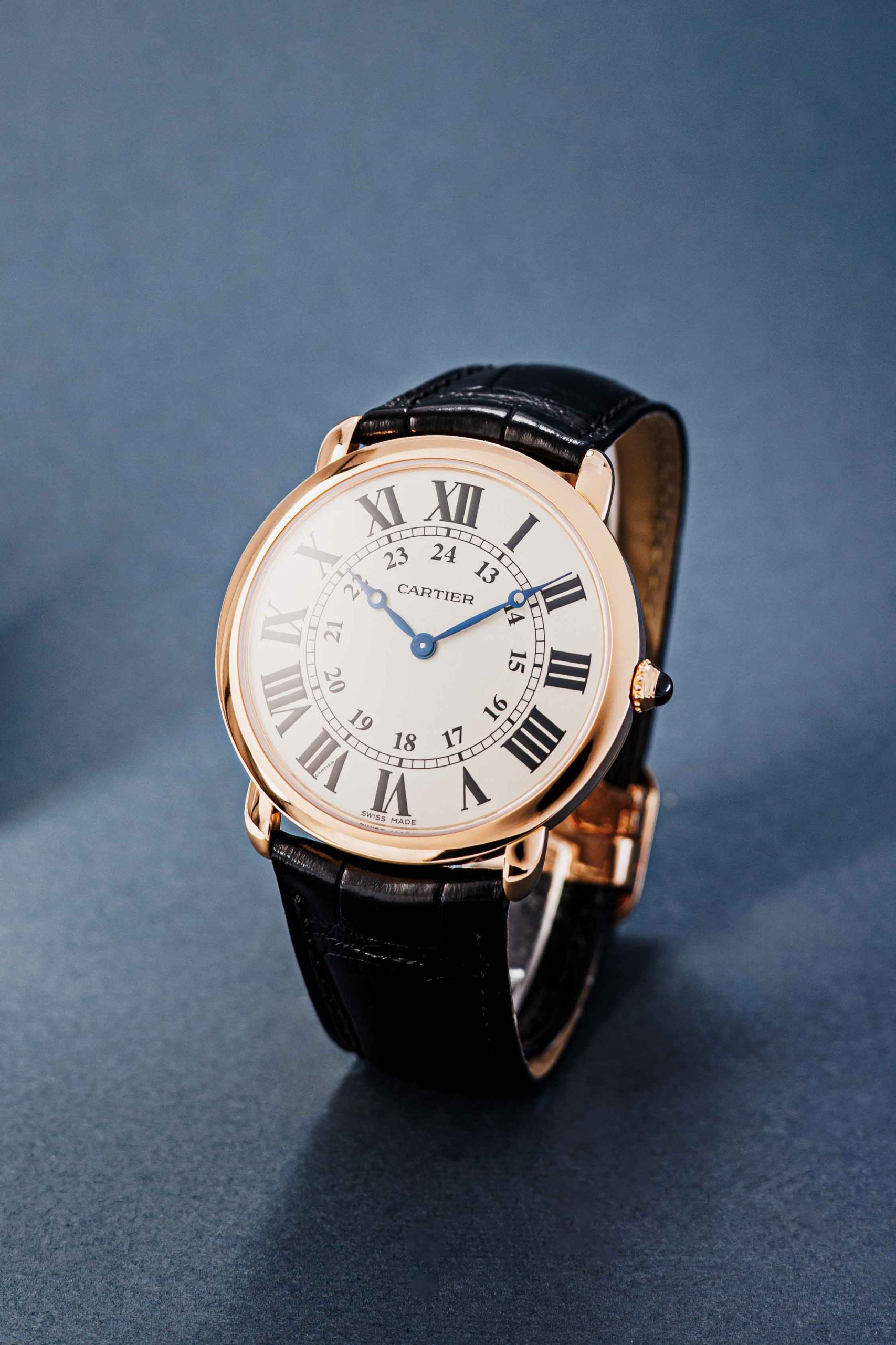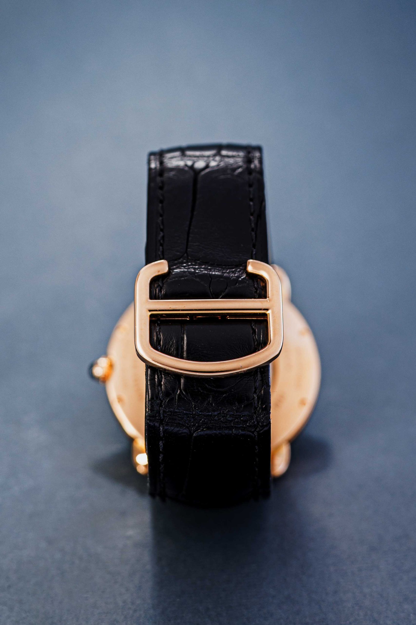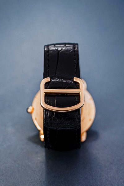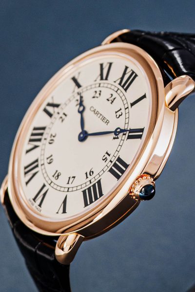 The recipe is clear: white dials, heat-blued hands, stark black Roman numerals and a sapphire cabochon in the crown. We try not to be too liberal with the term iconic, but it surely applies here! Countless variations in case shapes, sizes, movement types and materials have been made. From the Ronde to the Pasha and from the Baignoire to the Ceinture. A fun detail is the signature below six o’ clock. “Swiss” indicates that these are Swiss made watches. But some come with a “Paris” designation, signaling those examples were sold in Cartier’s flagship store in Paris, Place Vendôme. A particularly desirable and collectible feature.