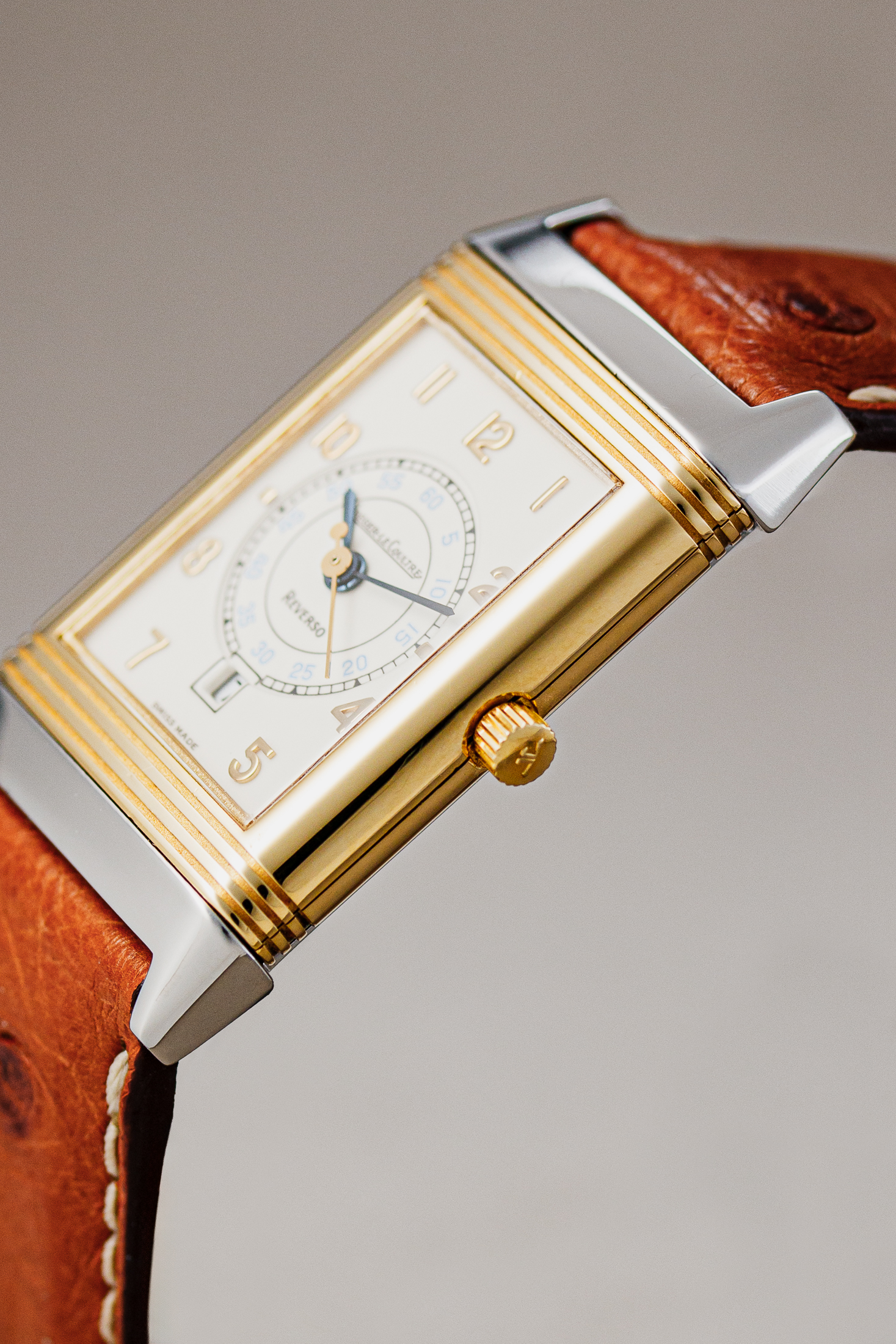 The backplate of the Reverso was often used for personal engravings or enamel decorations. It took until 1994 before JLC would house two dials and sets of hands within a single Reverso, creating the duo-face. A technical challenge, since both faces are powered by the same movement in between. Most would feature a light and a dark dial, to match different outfits, moods or times of the day (Reverso Day & Night).