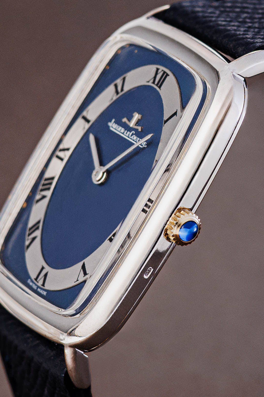 Due to protectionist laws in the US, JLC watches for the American market would be cased locally in American-made cases from 1932-1985. These were slightly different from the European-made watches and they were labeled LeCoultre. A JLC watch from this era with sole LeCoultre labeling can therefore easily be traced back to the US market. This is a work-around you will spot in other brands too. The Blancpain-Tornek rebranding is a great example.