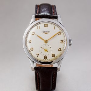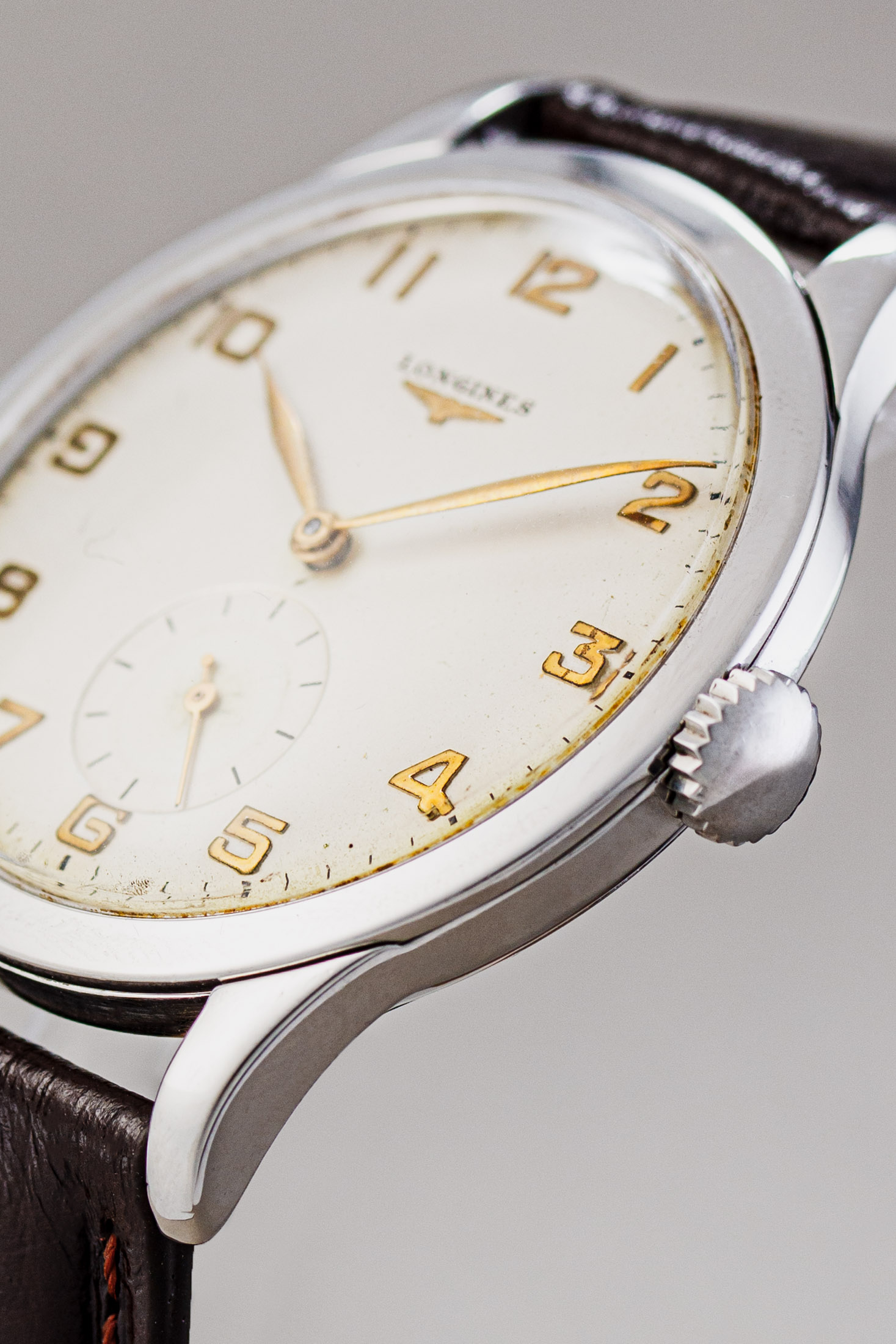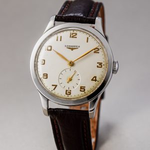 Throughout both world wars, Longines supplied military watches. They were one of the Dirty Dozen suppliers during late WWII. You will also find examples of the caged WWI trench watches in Longines’ archives.