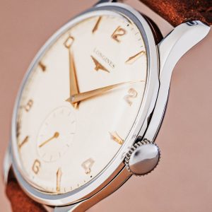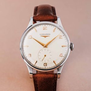 In the 1950s, the period from which this watch originates, the design of Longines watches was not attributed to a single “star designer,” as with the later Gérald Genta models, but was the result of a collective in-house team of master watchmakers and aesthetes. For this model, the designers drew strong inspiration from aviation pioneers like Charles Lindbergh. This resulted in a dial that is highly functional and legible, yet simultaneously a symbol of intellectual elegance. The combination of the robust steel case and the elegant gold hands makes this watch a rare blend of power and refinement.