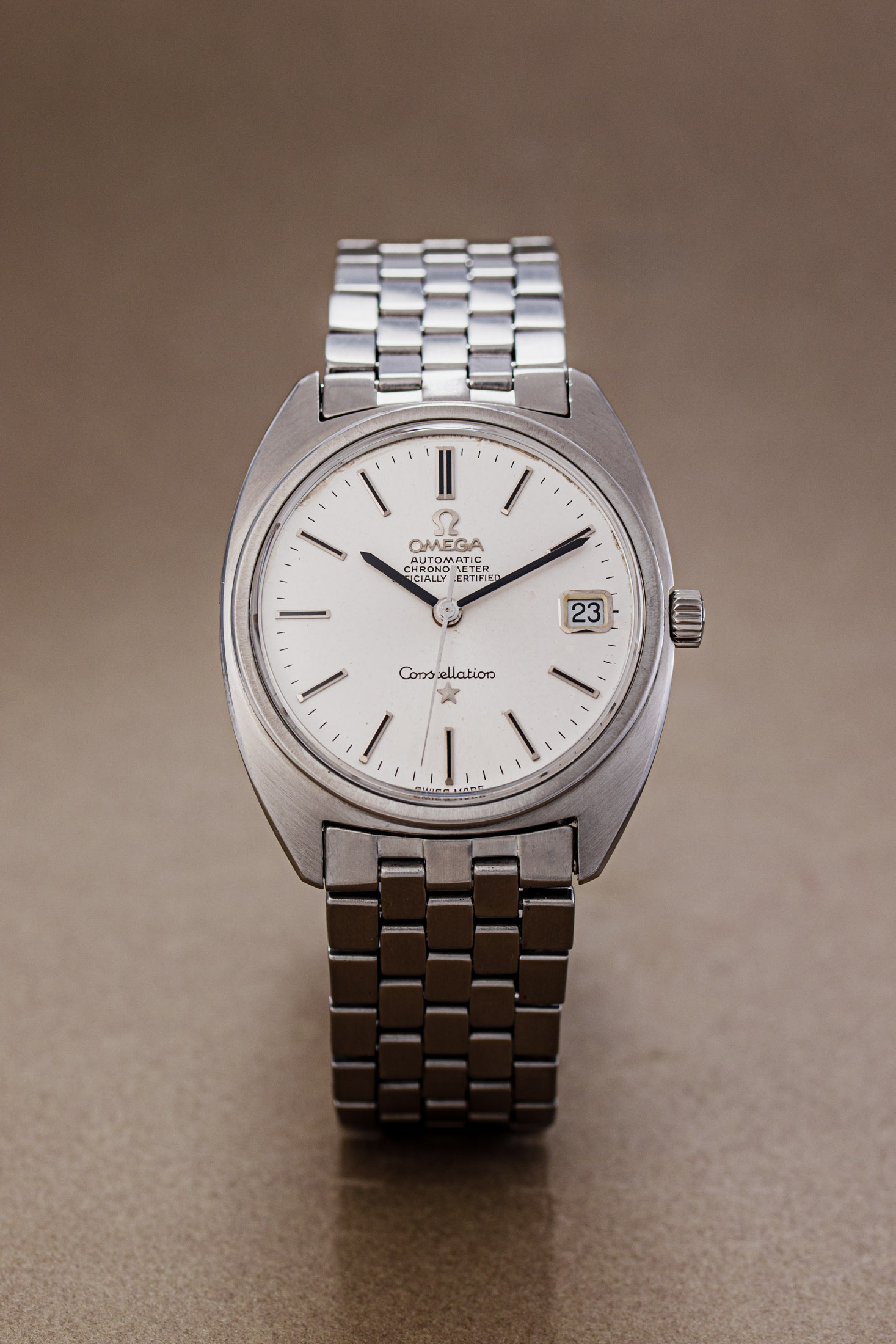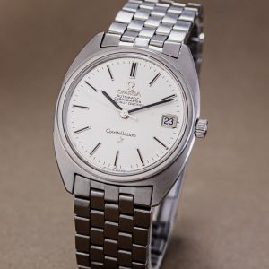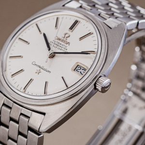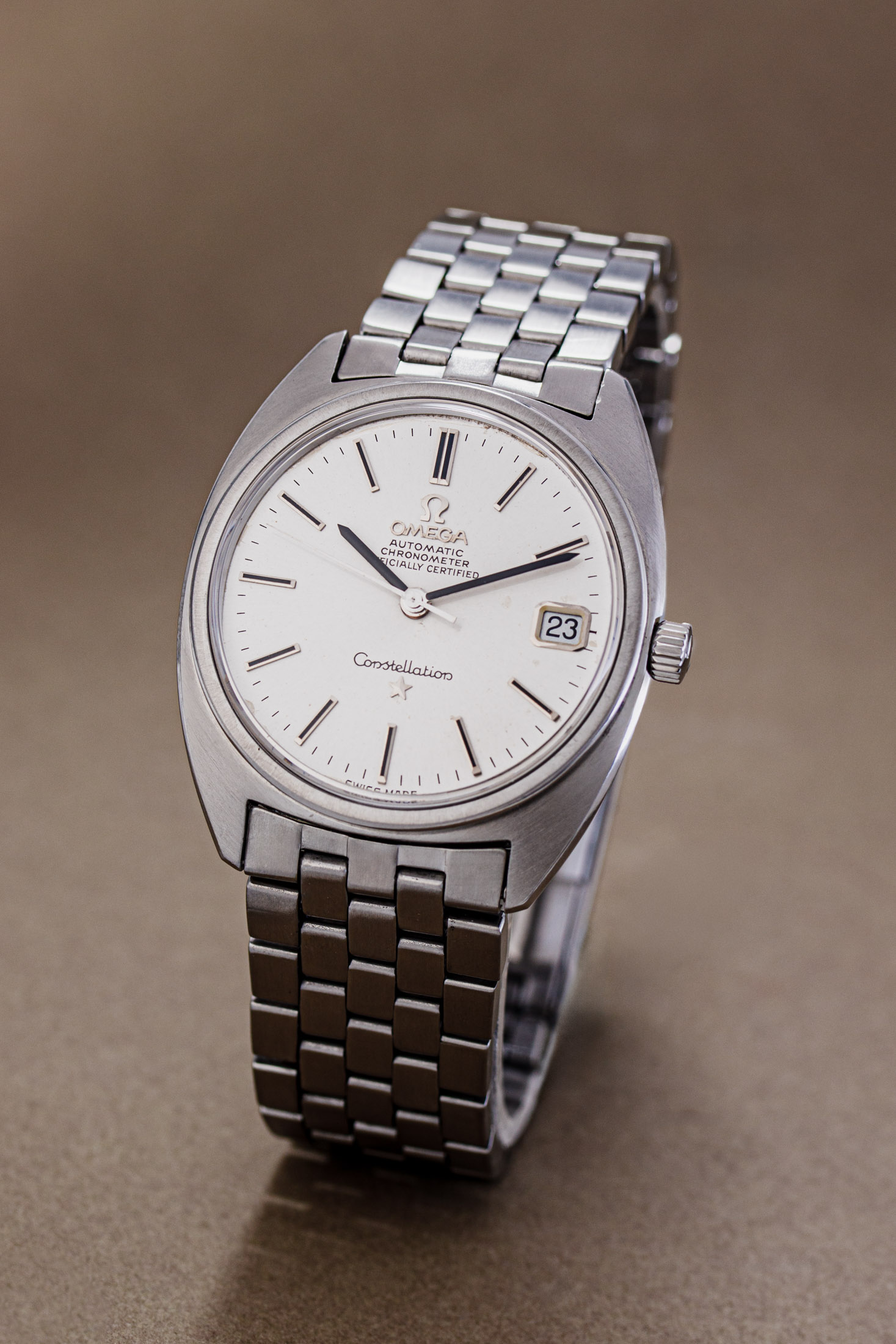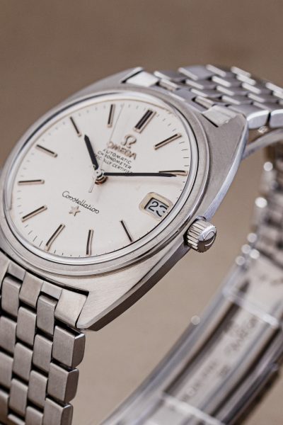 The earlier models from the 1950’s and 1960’s featured the iconic pie-pan dial. The dial would slope down at an angle around its outer perimeter, providing a very cool sense of dimensionality. Since the look is reminiscent of the underside of a pie-pan, a nickname was quickly born. Halfway through the sixties, flat-dial versions slowly took over. The pie-pan remains a highly sought-after Constellation variant today.
