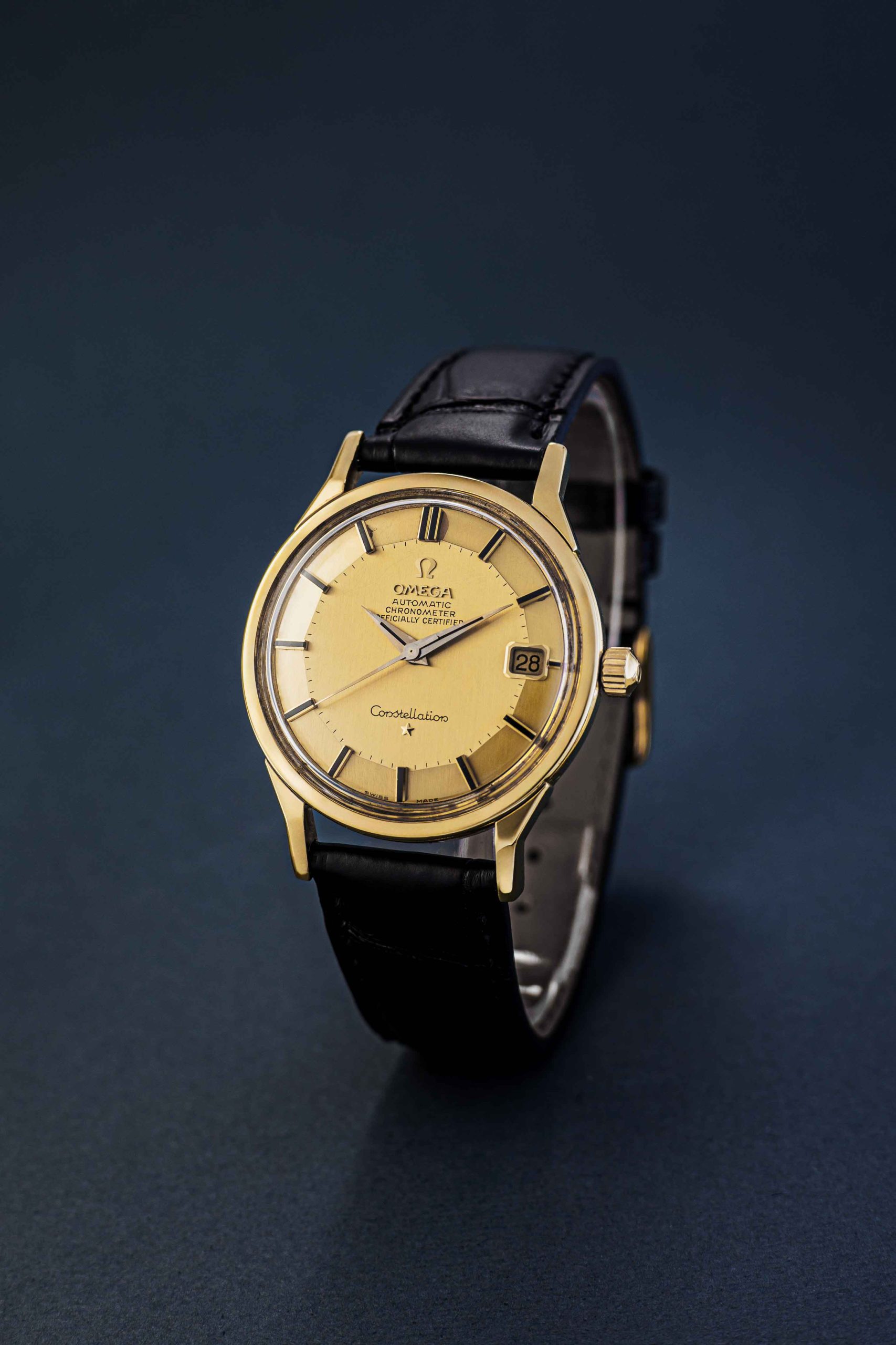 The earlier models from the 1950’s and 1960’s featured the iconic pie-pan dial. The dial would slope down at an angle around its outer perimeter, providing a very cool sense of dimensionality. Since the look is reminiscent of the underside of a pie-pan, a nickname was quickly born. Halfway through the sixties, flat-dial versions slowly took over. The pie-pan remains a highly sought-after Constellation variant today.