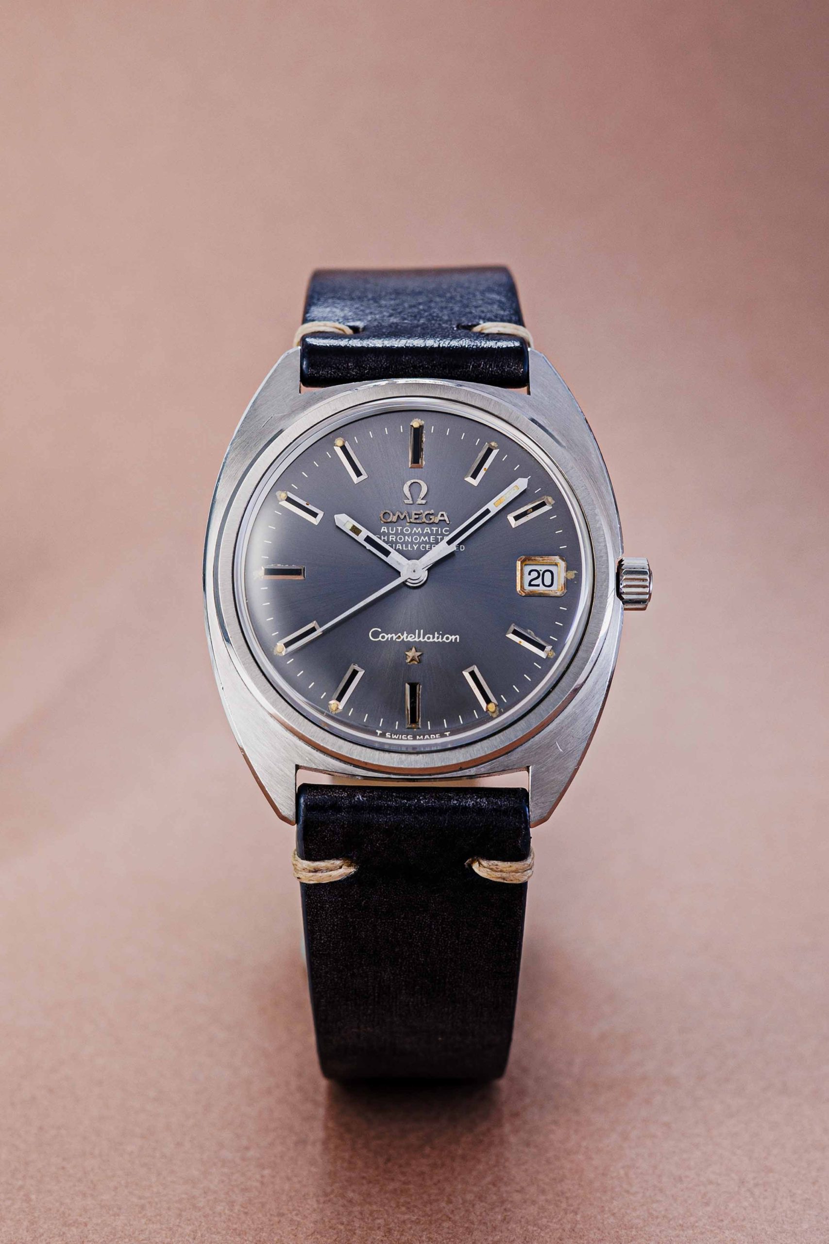 The earlier models from the 1950’s and 1960’s featured the iconic pie-pan dial. The dial would slope down at an angle around its outer perimeter, providing a very cool sense of dimensionality. Since the look is reminiscent of the underside of a pie-pan, a nickname was quickly born. Halfway through the sixties, flat-dial versions slowly took over. The pie-pan remains a highly sought-after Constellation variant today.