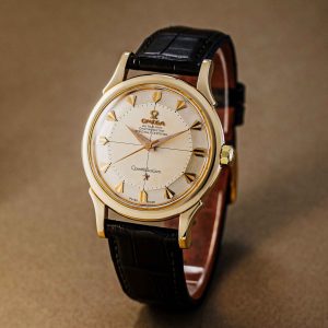 This piece is a true classic dress watch. On the caseback, the famous Observatory medallion is engraved beneath a starry sky, celebrating Omega’s exceptional precision and chronometric achievements. The eight stars represent the eight precision awards and two world records Omega earned between 1945 and 1952, with the Observatory itself being the source of this excellence.