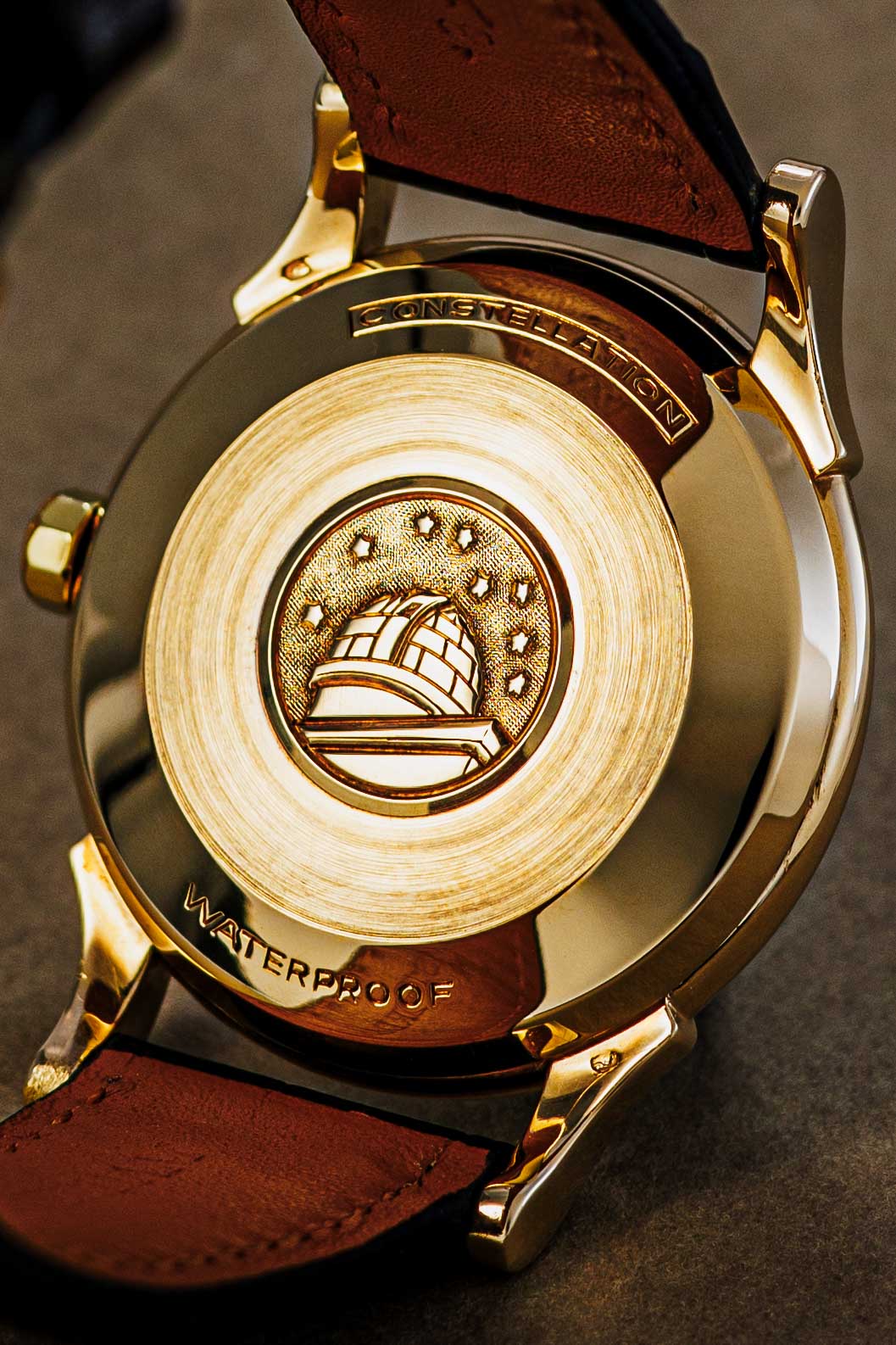 The Constellation would be easily recognizable through a star on the dial and a caseback featuring an image of the Geneva observatory and eight stars. A nod to the accuracy records Omega set at the Kew-Teddington observatory in the 1930’s.