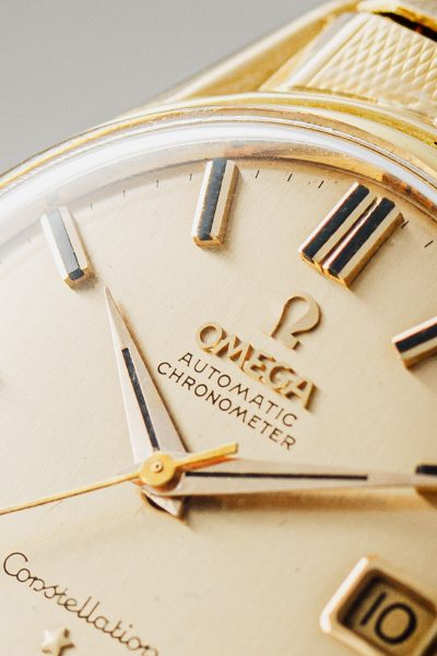 The earlier models from the 1950’s and 1960’s featured the iconic pie-pan dial. The dial would slope down at an angle around its outer perimeter, providing a very cool sense of dimensionality. Since the look is reminiscent of the underside of a pie-pan, a nickname was quickly born. Halfway through the sixties, flat-dial versions slowly took over. The pie-pan remains a highly sought-after Constellation variant today.