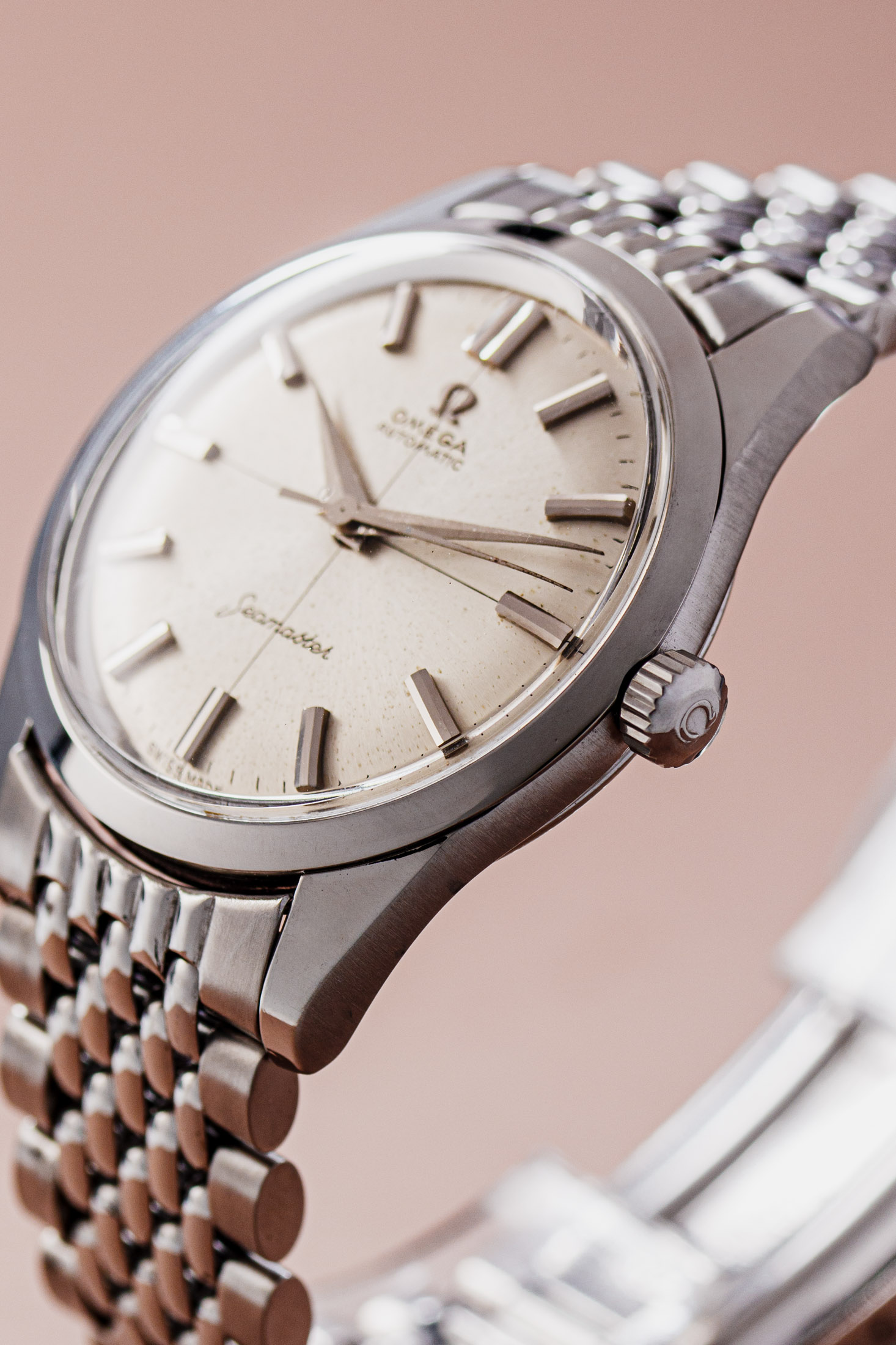 The earlier models from the 1950’s and 1960’s featured the iconic pie-pan dial. The dial would slope down at an angle around its outer perimeter, providing a very cool sense of dimensionality. Since the look is reminiscent of the underside of a pie-pan, a nickname was quickly born. Halfway through the sixties, flat-dial versions slowly took over. The pie-pan remains a highly sought-after Constellation variant today.