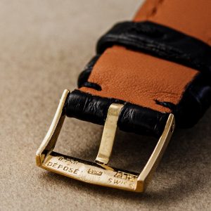 Let’s start with the case: crafted in solid 18k yellow gold, it feels surprisingly robust for a smaller watch from that era. One of the standout features? The beautifully scrolled lugs elegant, detailed, and rarely seen in modern watch design.