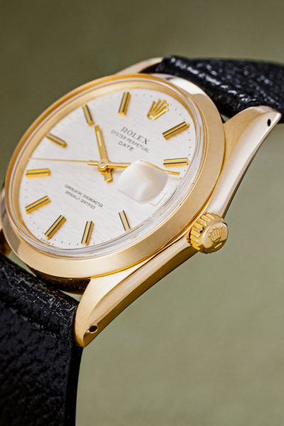The Rolex Date line is perhaps a bit of a hidden gem. Overlooked by the male audience when fashion dictated watches should be big in the early 2000s. Now that the trends are leaning towards smaller again, they are being rediscovered as a pretty great size for both men and women. Of course, there are smaller sizes available as well, but the 34mm is the most common.