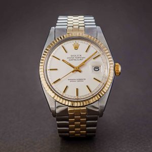 When it comes to vintage, two generations of Datejust are particularly popular; the Ref. 16xx and the later five-digit references. The 16xx models were made from the fifties until roughly 1978 and feature a beautifully dimensional pie-pan dial. Many of these came on folded jubilee bracelets and they did not yet feature a quickset date.