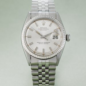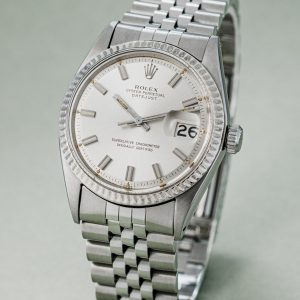 When it comes to vintage, two generations of Datejust are particularly popular; the Ref. 16xx and the later five-digit references. The 16xx models were made from the fifties until roughly 1978 and feature a beautifully dimensional pie-pan dial. Many of these came on folded jubilee bracelets and they did not yet feature a quickset date.