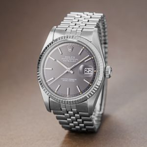 When it comes to vintage, two generations of Datejust are particularly popular: the Ref. 1600 series and the later five-digit references. The 16xx models were produced from the 1950s until about 1978 and feature a beautiful, three-dimensional ‘pie-pan’ dial. Many of these models came with a folded Jubilee bracelet and were not yet equipped with a quick-set date function.
