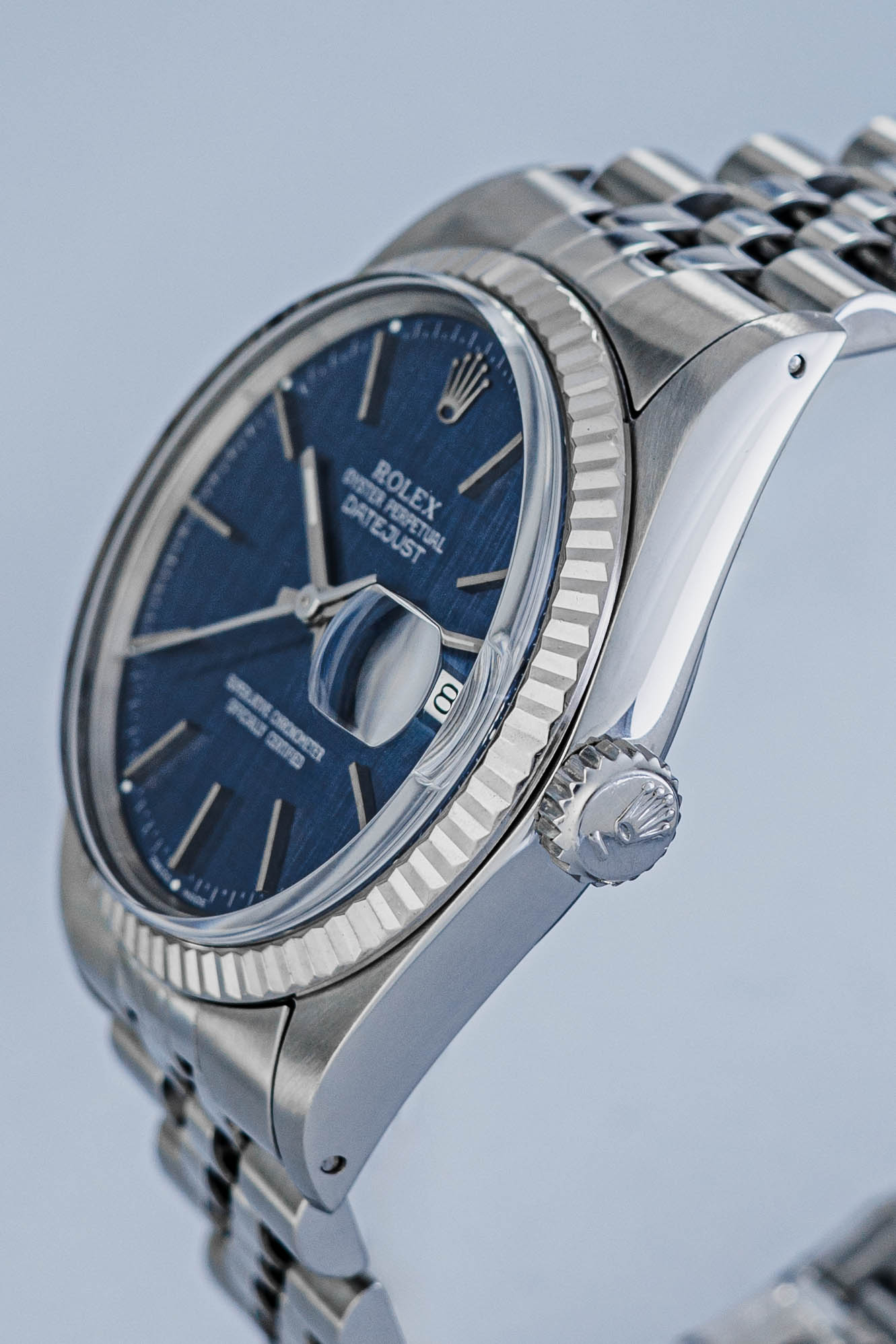 When it comes to vintage, two generations of Datejust are particularly popular; the Ref. 16xx and the later five-digit references. The 16xx models were made from the fifties until roughly 1978 and feature a beautifully dimensional pie-pan dial. Many of these came on folded jubilee bracelets and they did not yet feature a quickset date.