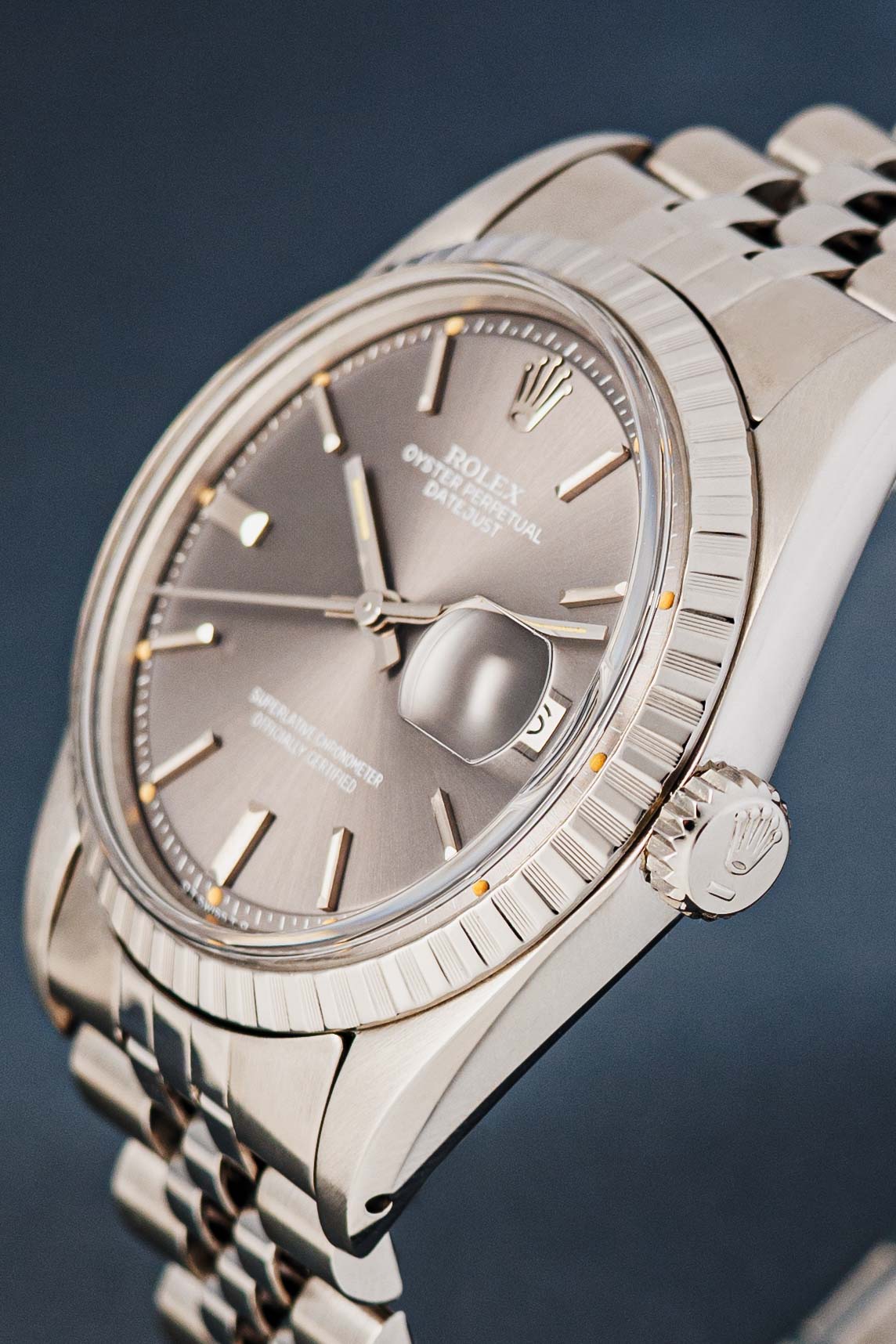 When it comes to vintage, two generations of Datejust are particularly popular; the Ref. 16xx and the later five-digit references. The 16xx models were made from the fifties until roughly 1978 and feature a beautifully dimensional pie-pan dial. Many of these came on folded jubilee bracelets and they did not yet feature a quickset date.