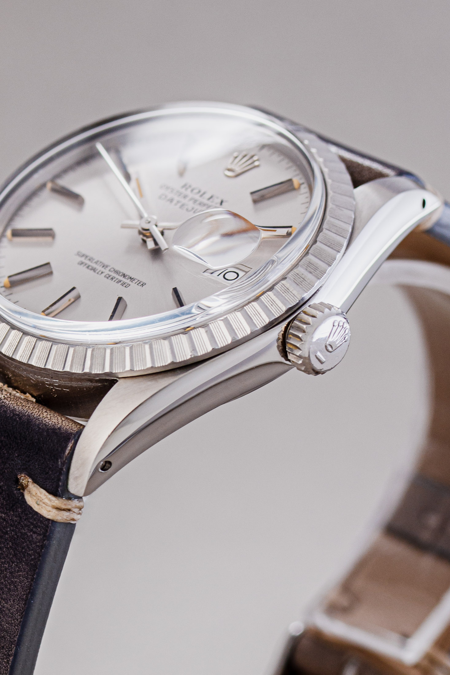 When it comes to vintage, two generations of Datejust are particularly popular; the Ref. 16xx and the later five-digit references. The 16xx models were made from the fifties until roughly 1978 and feature a beautifully dimensional pie-pan dial. Many of these came on folded jubilee bracelets and they did not yet feature a quickset date.