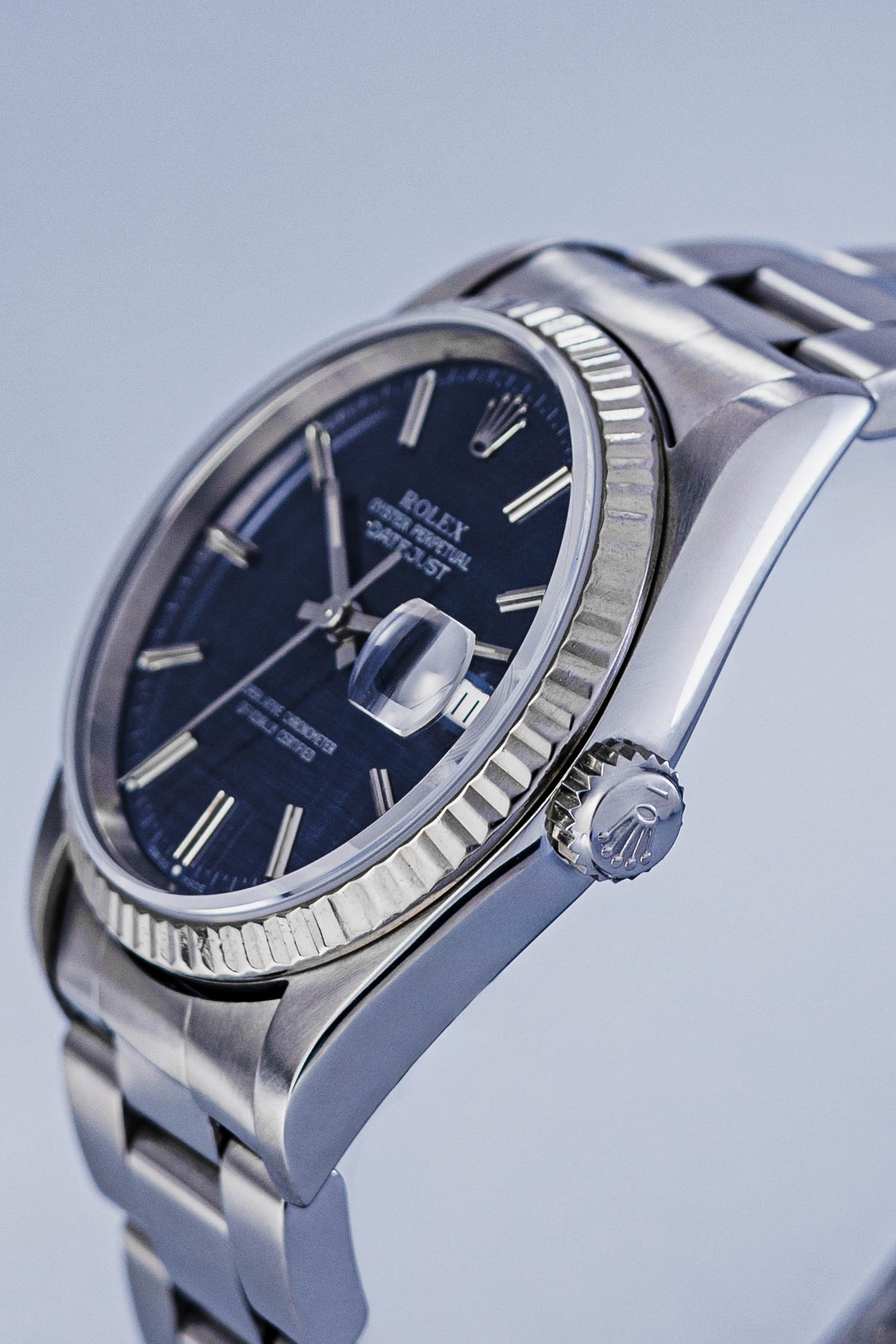 When it comes to vintage, two generations of Datejust are particularly popular; the Ref. 16xx and the later five-digit references. The 16xx models were made from the fifties until roughly 1978 and feature a beautifully dimensional pie-pan dial. Many of these came on folded jubilee bracelets and they did not yet feature a quickset date.