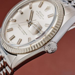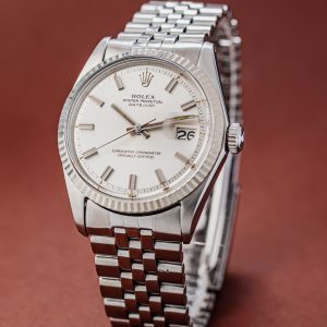 When it comes to vintage, two generations of Datejust are particularly popular; the Ref. 16xx and the later five-digit references. The 16xx models were made from the fifties until roughly 1978 and feature a beautifully dimensional pie-pan dial. Many of these came on folded jubilee bracelets and they did not yet feature a quickset date.