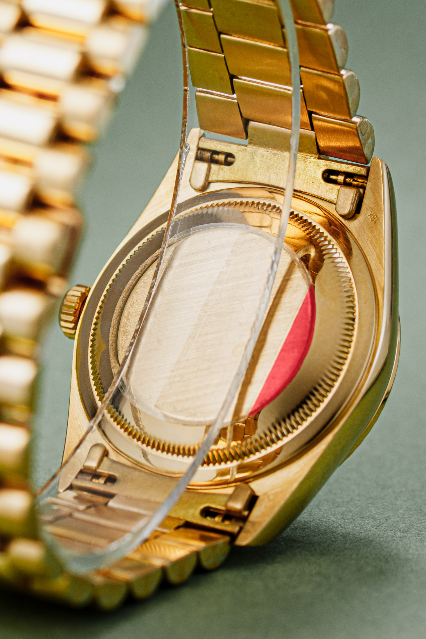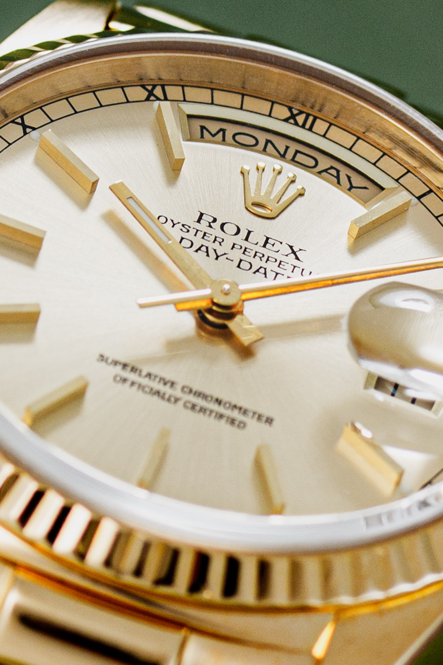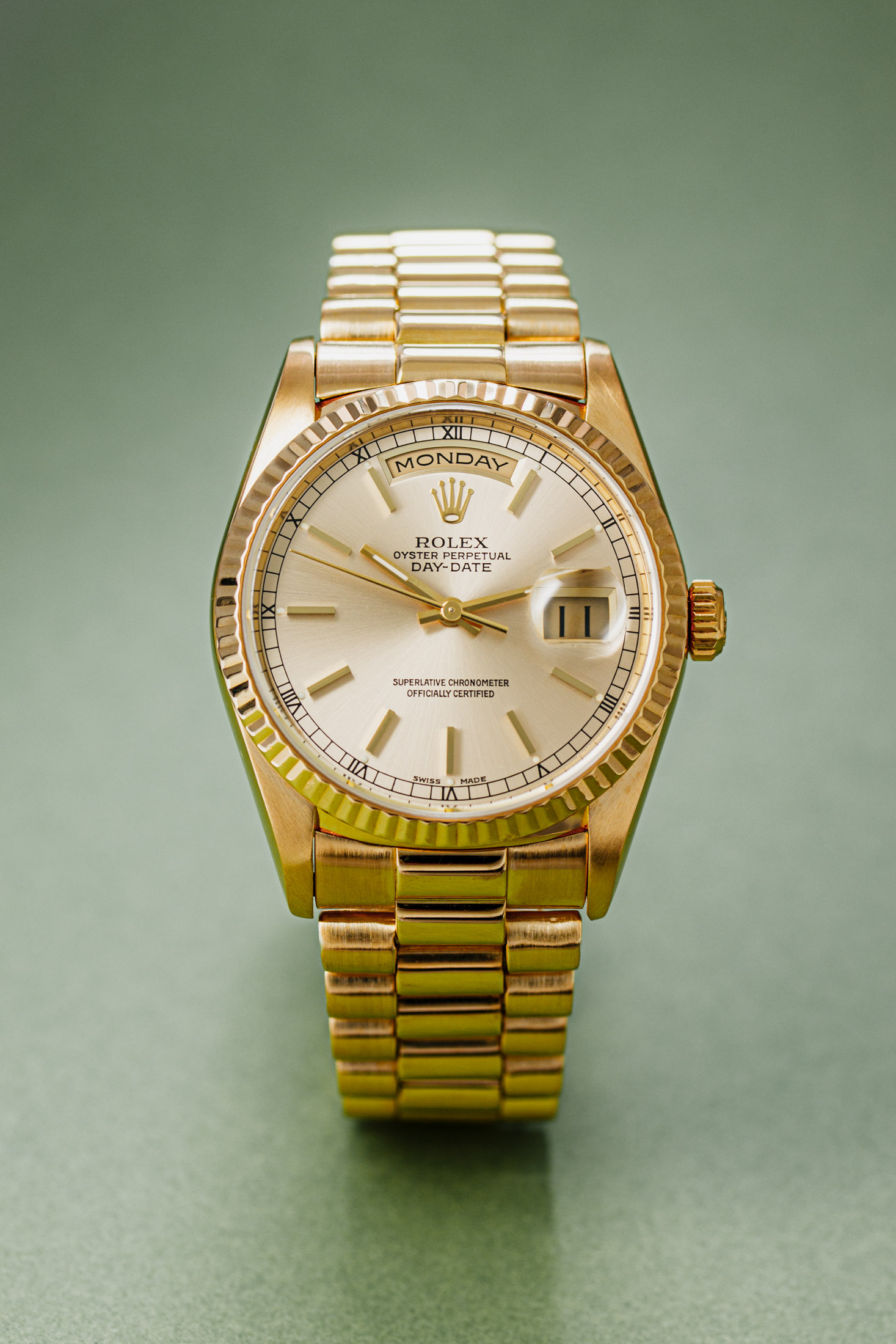 Imagine this as the gift under the tree: an unforgettable surprise for the upcoming Christmas holidays. The warm radiance of the gold reflects the cosiness you will experience in our welcoming AWCo store, where the love for timepieces is paramount. This watch represents a timeless value that perfectly fits the tradition of giving. It is a legacy of quality, destined to shine for many generations to come. The light that falls upon the fluted bezel creates a warm welcome, much like the atmosphere in our shop. There may be no perfect watch, but this Day-Date comes very close with its ageless allure.