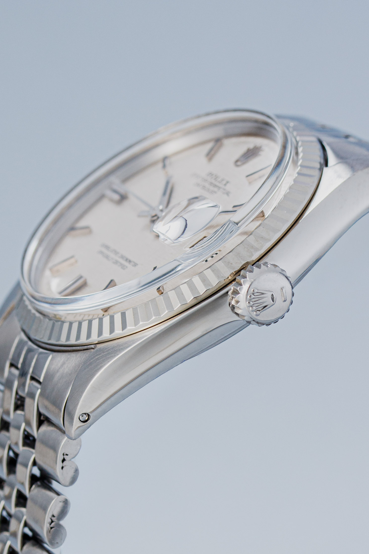 When it comes to vintage, two generations of Datejust are particularly popular; the Ref. 16xx and the later five-digit references. The 16xx models were made from the fifties until roughly 1978 and feature a beautifully dimensional pie-pan dial. Many of these came on folded jubilee bracelets and they did not yet feature a quickset date.
