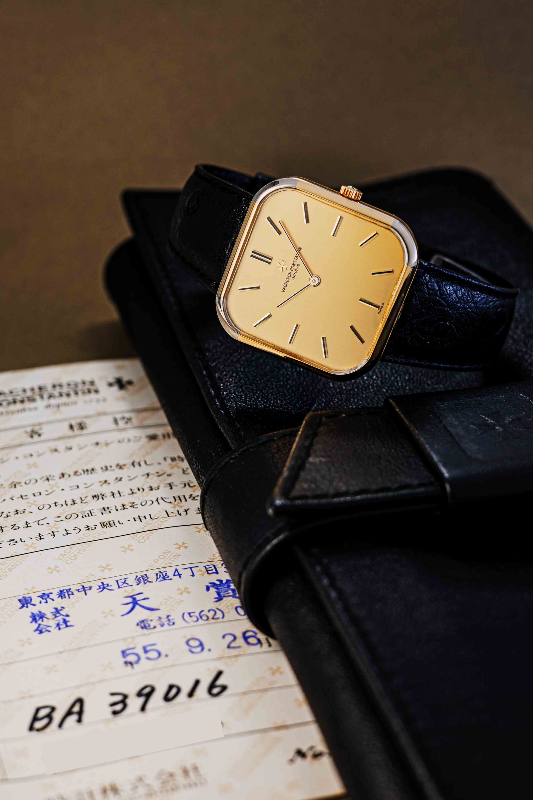 Here we present a beautifully finished Vacheron Constantin dress watch, featuring a rare square-shaped two-tone case design from 1980.